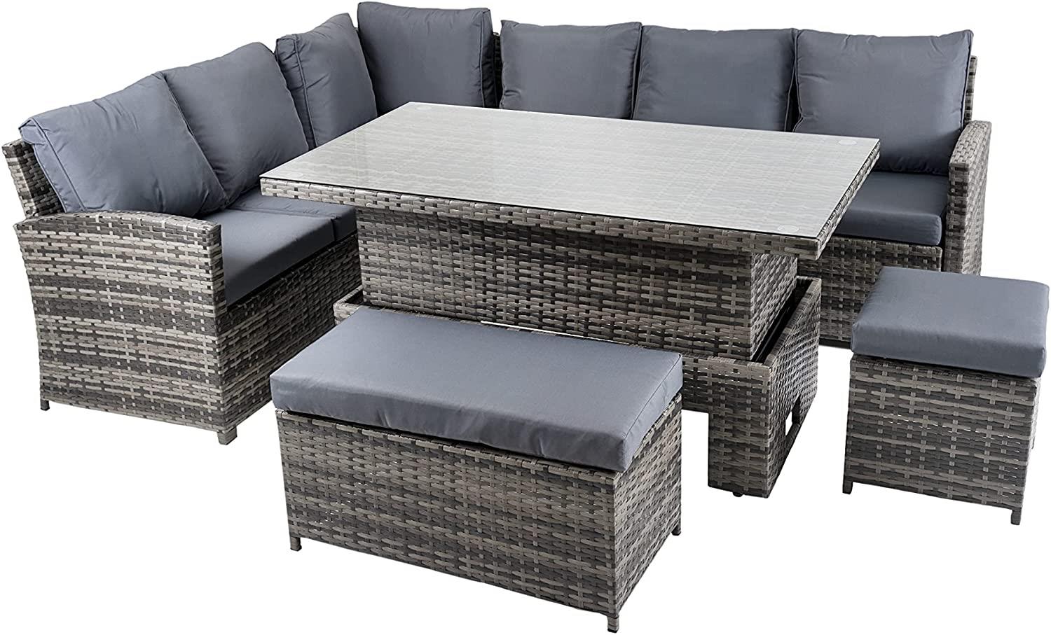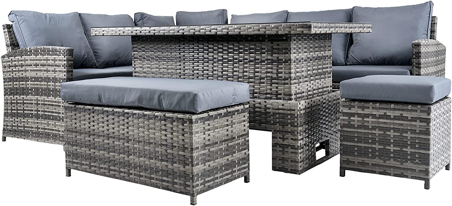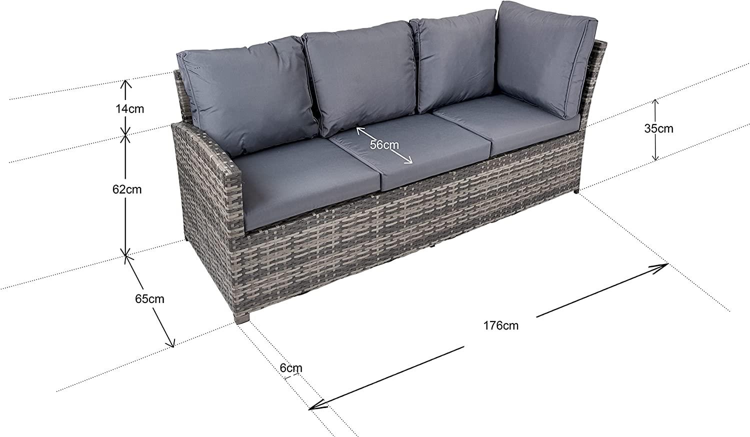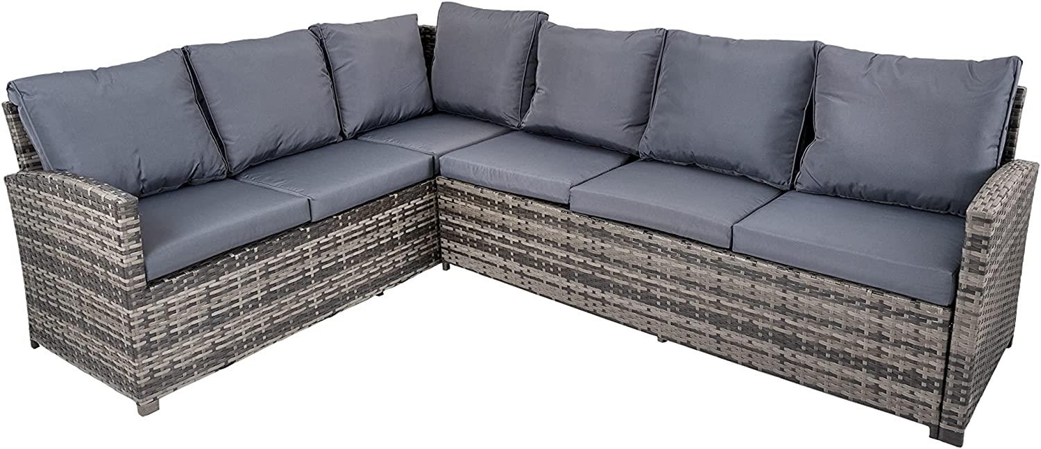 Grey Rattan 7-Seater Sofa Set with Stools and Table