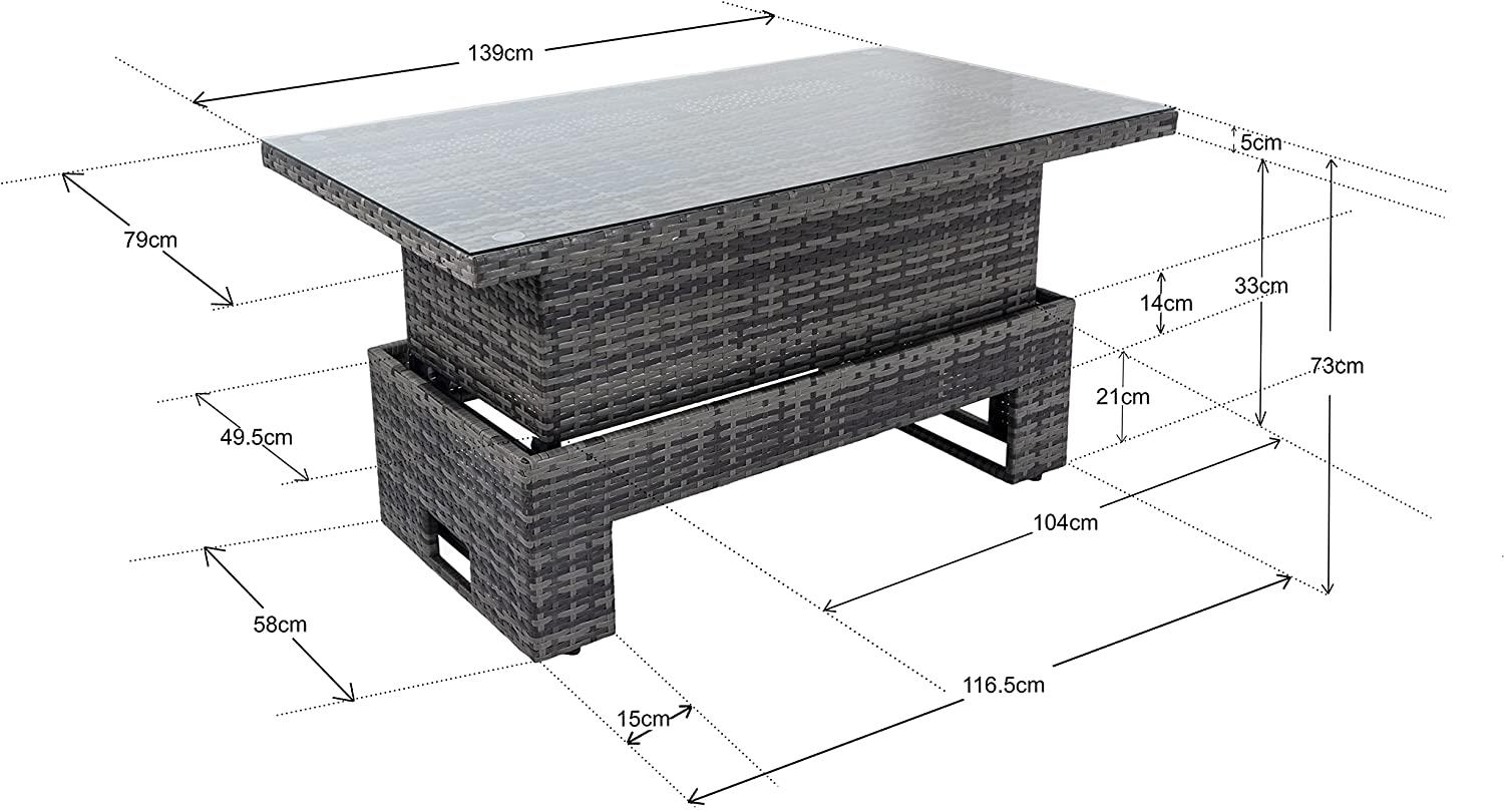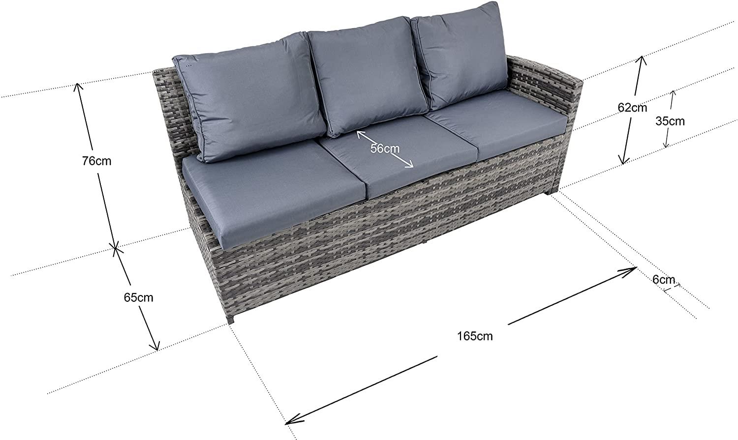 - Item Dimension: Sofa - W176xD65xH76 cm and W171xD65xH76 cm, Table: L139xD79xH73 cm, Stool: W40xD40xH35 cm, Large Stool: W80xD40xH35 cm, Cushions: 8cm, 5mm clear toughened glass