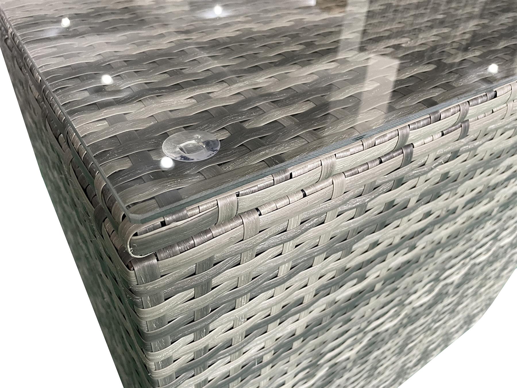 - The Set has grey color rattan material, a sturdy rattan table that can be used as a storage box as well, and grey cushions and seats on the sofa, stools, and chairs.