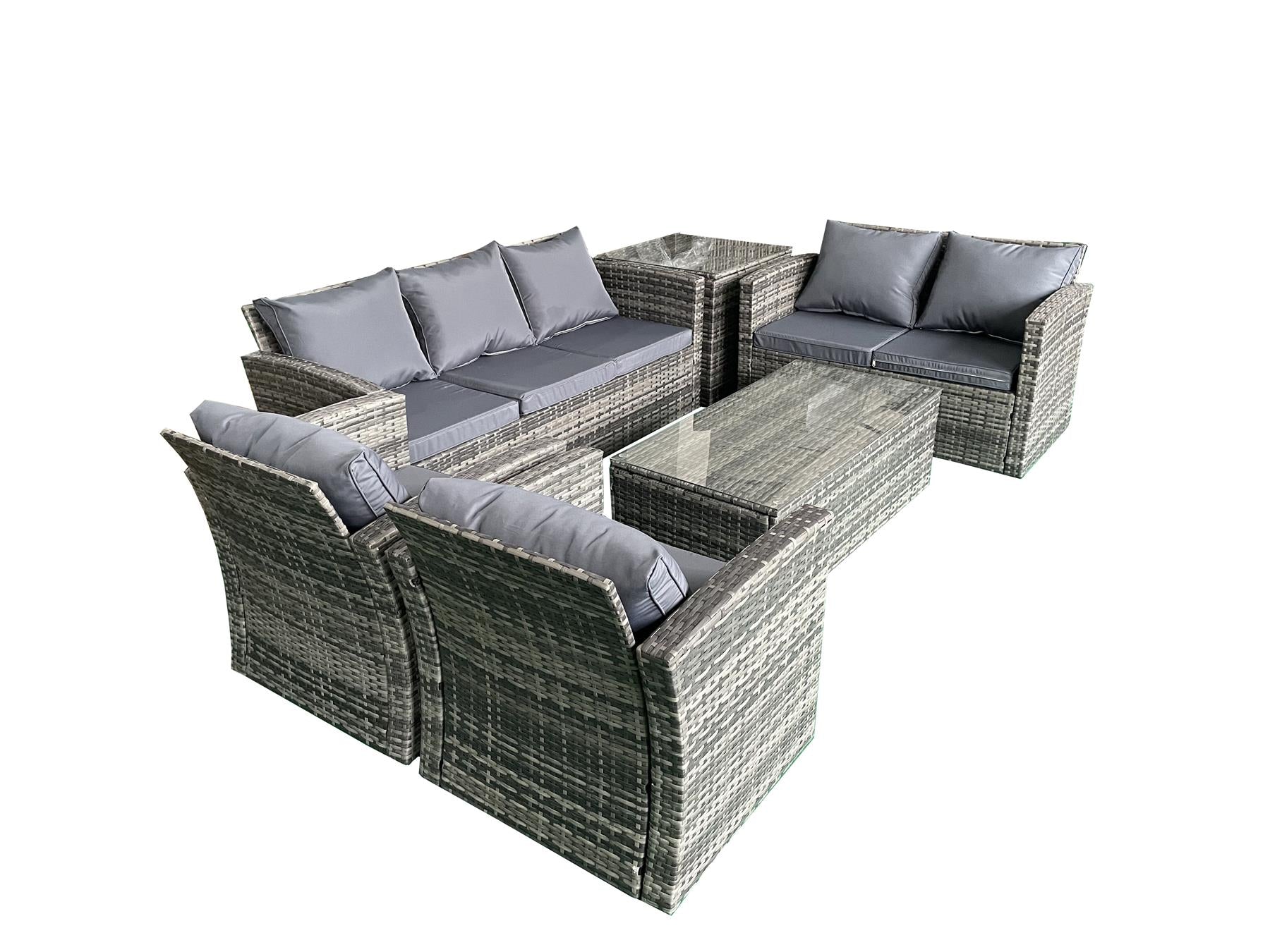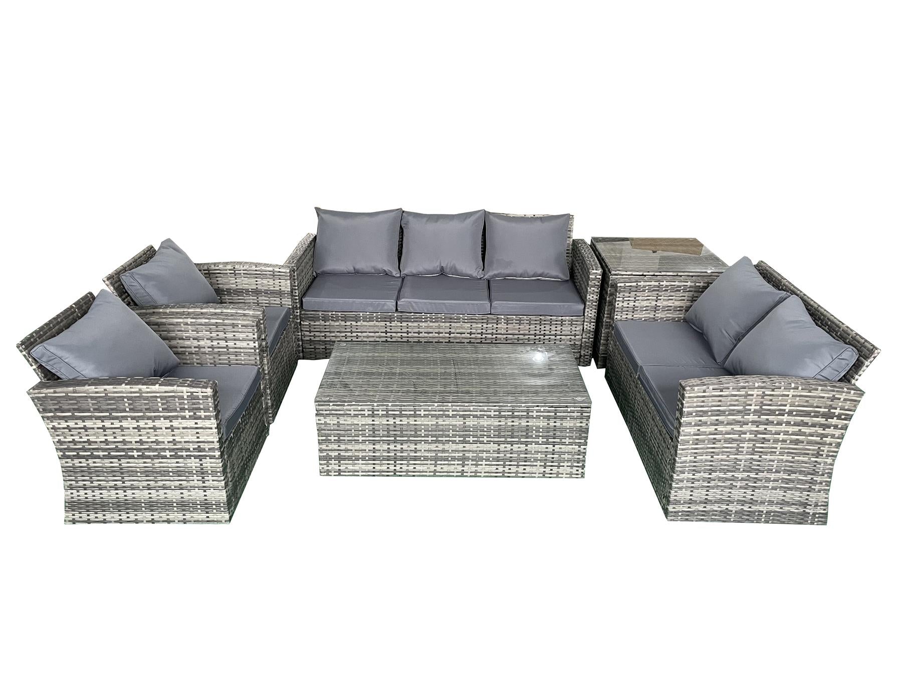 Grey Rattan Sofa Set (3 Seater, 2 Seater, 2 Chairs, 1 Storage Box, 1 Table)