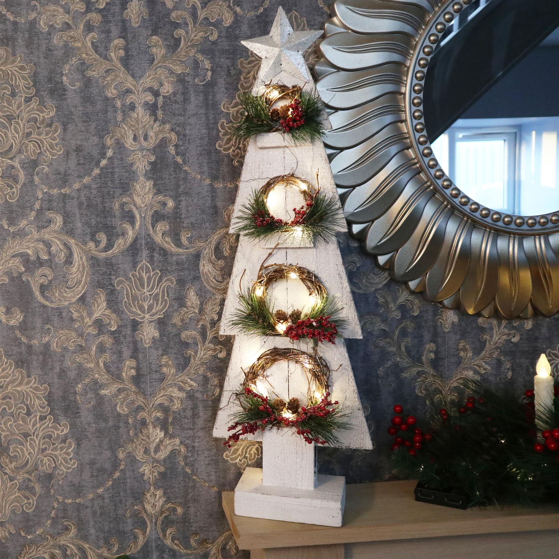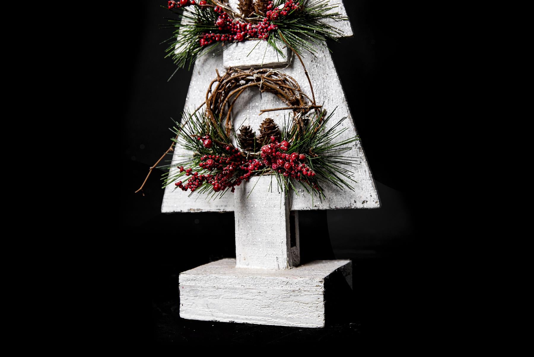 - It has small Wreaths decorated with pines and barriers. Made of high-quality Wooden material, safe, durable, and eco-friendly. 100% brand new and high quality.