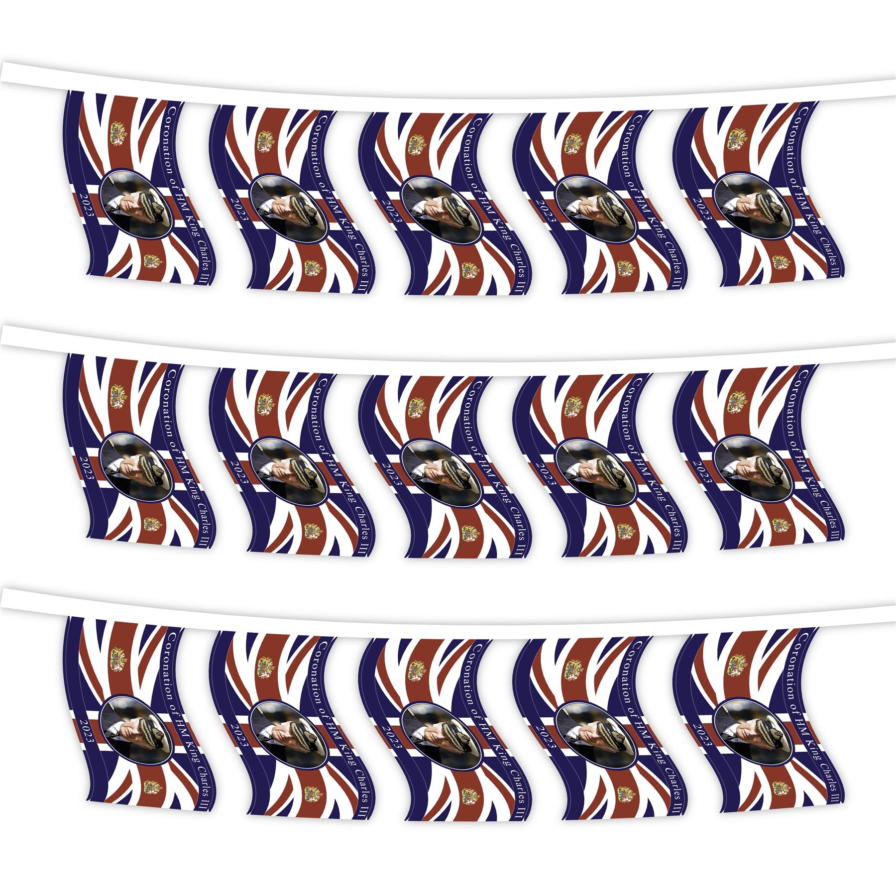 - Used: Great as a gift to cherish for friends and family or added to a collection of souvenirs of our amazing king. Bunting garland for Union Jack party, street party, King's coronation themed parties and commonwealth games.