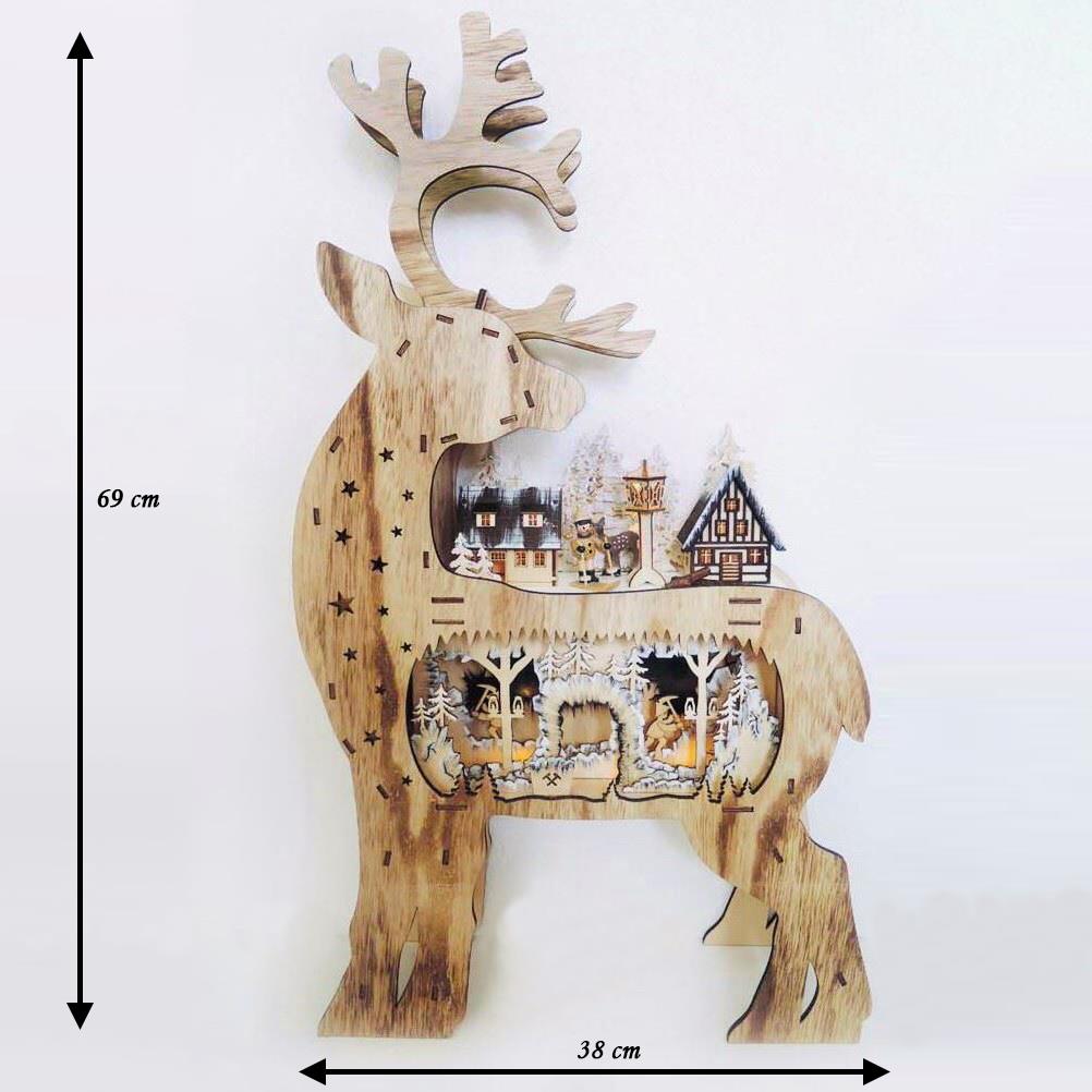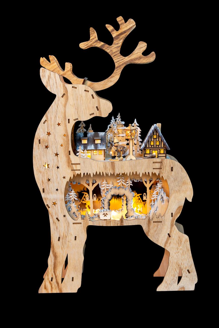 Laser Cut Reindeer LED Wooden Decoration - Battery Operated