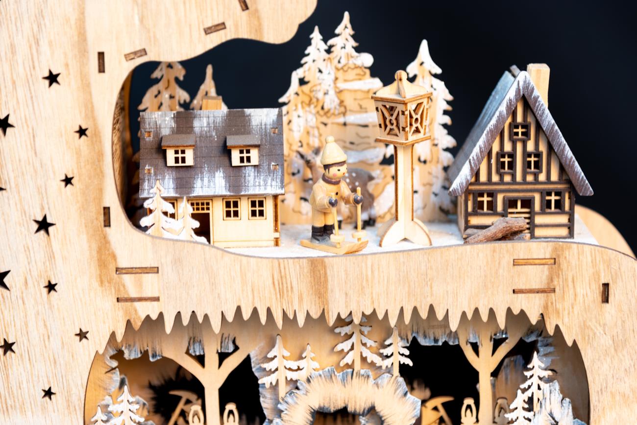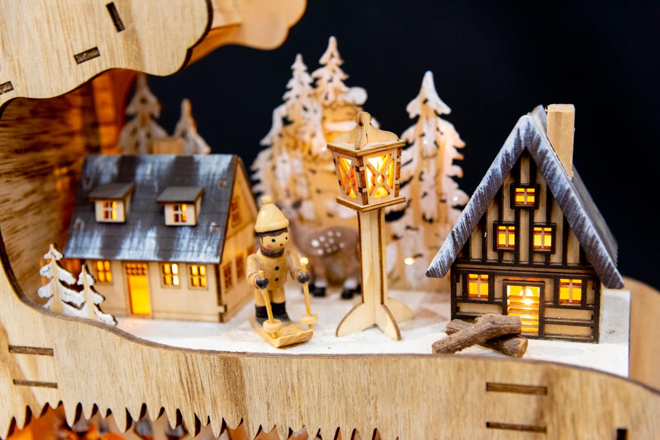 - This Light-Up Reindeer Makes A Gorgeous Addition To Home Decorations. It has lovely village scenery printed on it which includes trees and houses.
