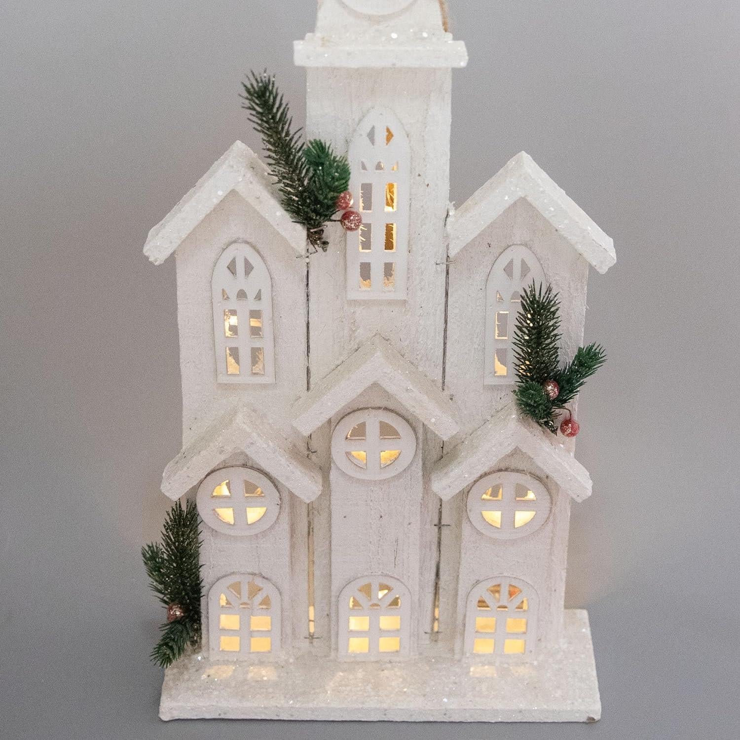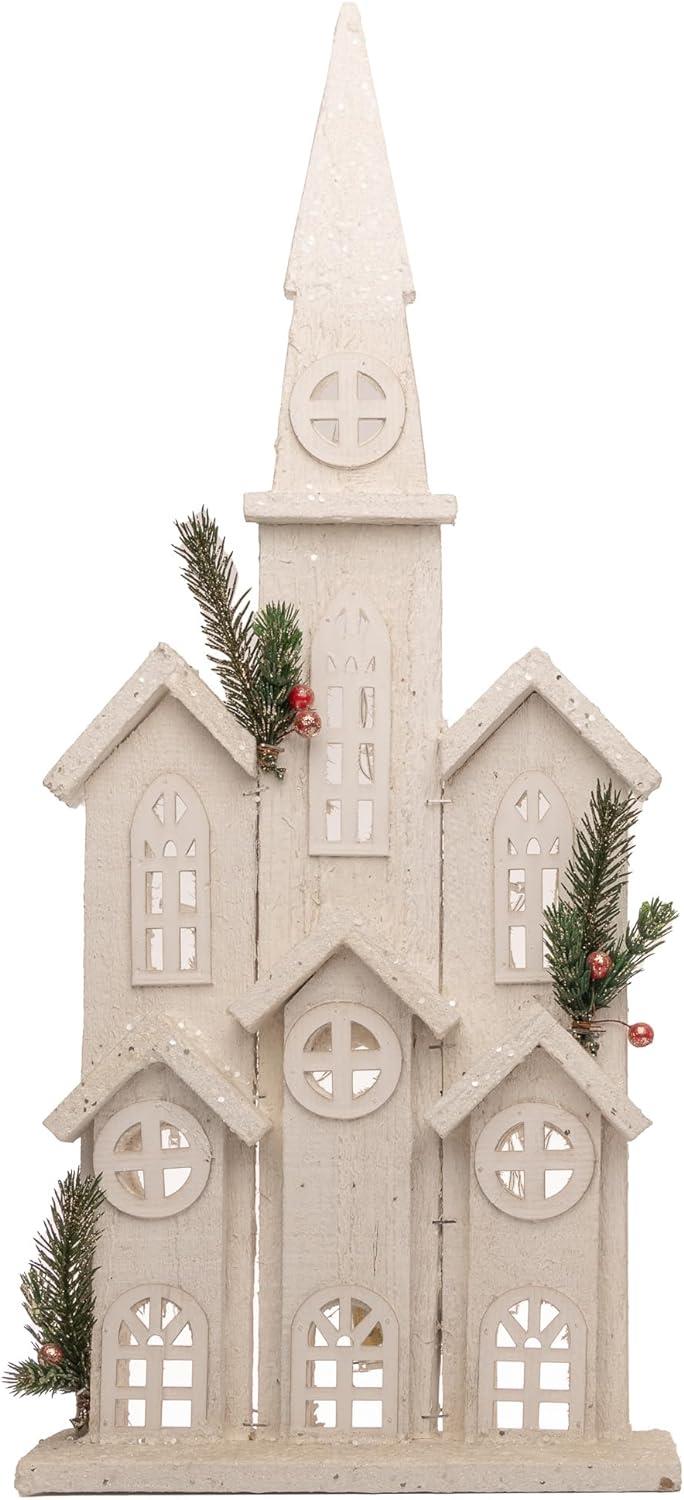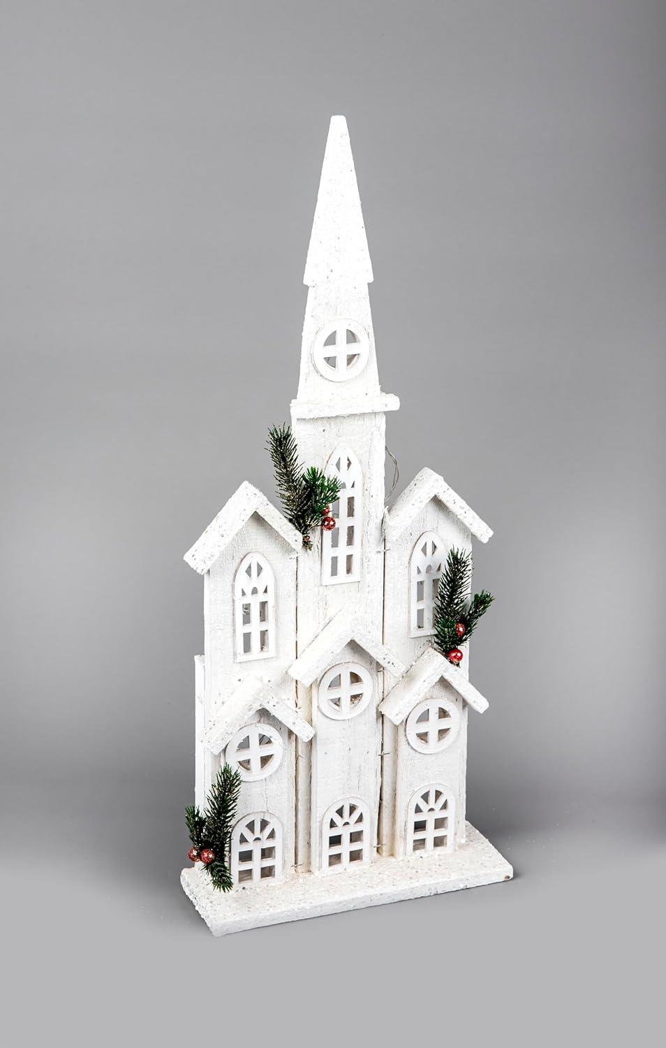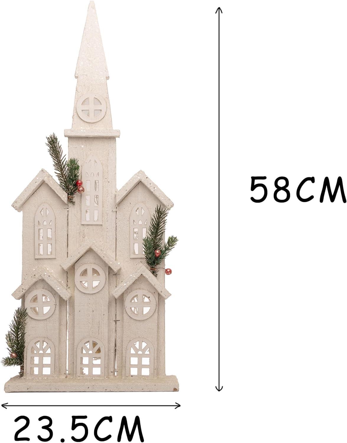- [BATTERY POWERED] This festive wooden church is operated by 2 x AA batteries (not included). This wooden Christmas ornament measures 24cm x 8cm x 58cm. Colour: White.