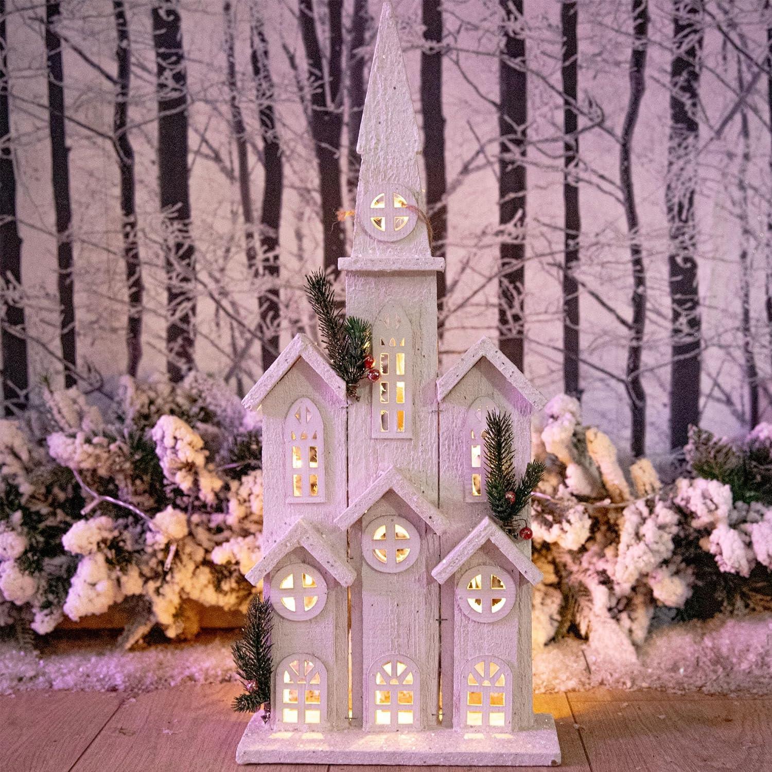 - [SNOW COVERED] This fantastic decorative wooden snow-covered church house is the perfect decoration that will not only look great but bring a magical focal point into your home this festive season.