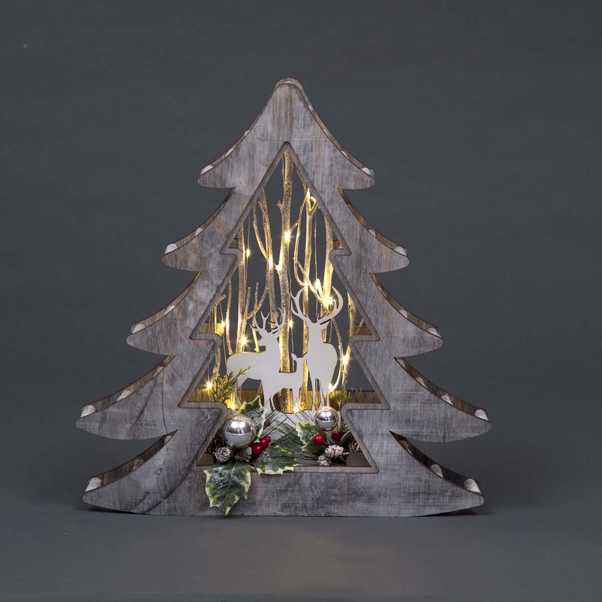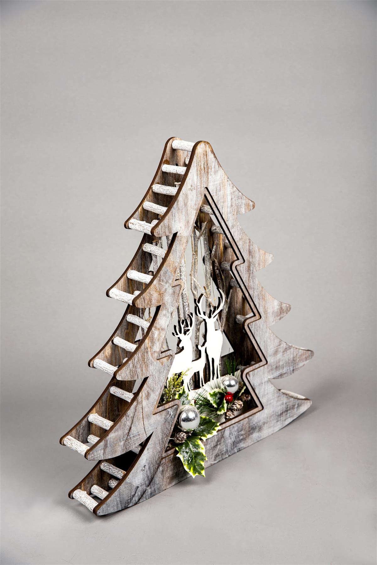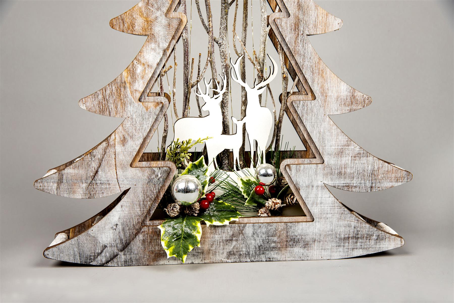 - Christmas Decoration: Add a touch of holiday magic to your home decor with the Wooden Christmas Reindeer Scene Table Top. This unique Christmas tree-shaped decoration is the perfect size for tabletops, shelves, or mantels, measuring W46xD7xH48cm.