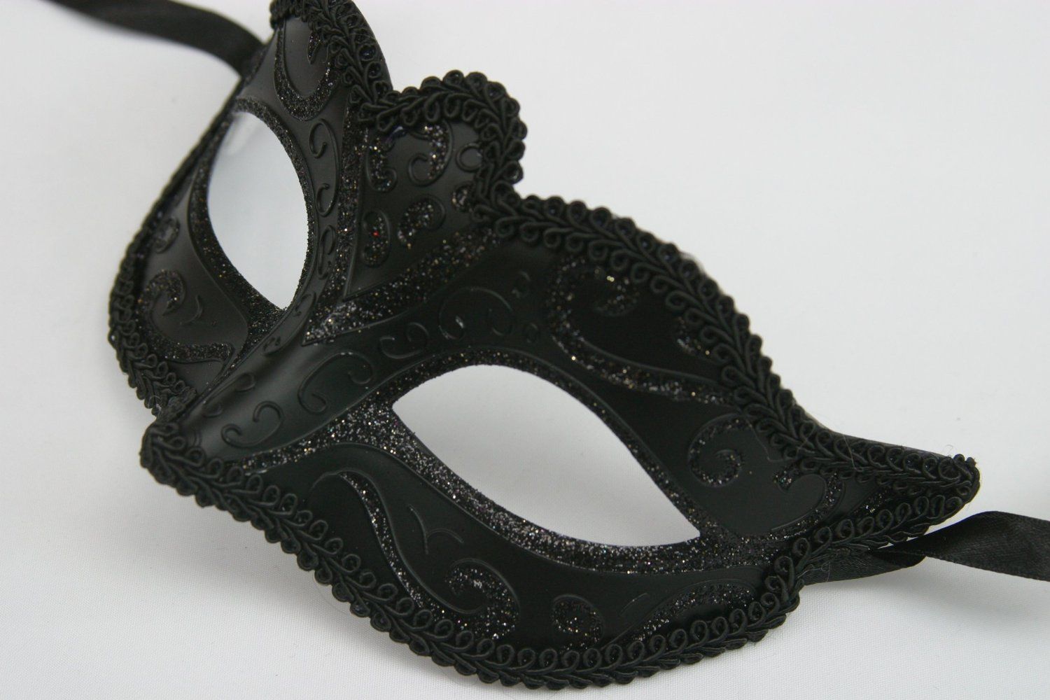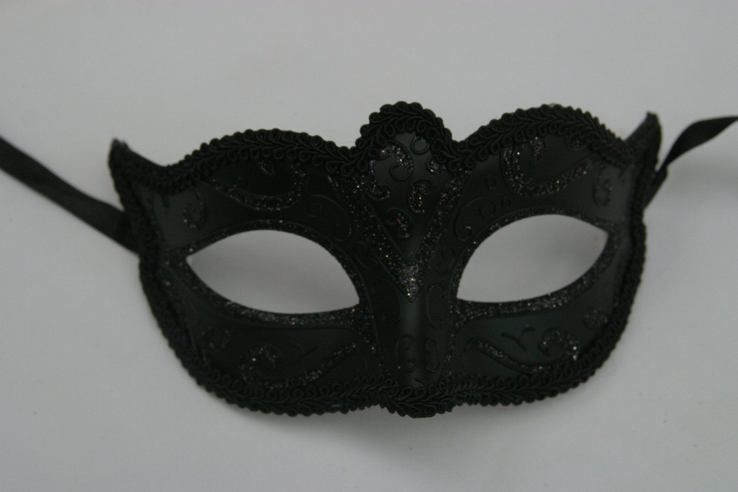 - MIDNIGHT BLACK MASK DEPTH 8CMS (3") MEN OR LADIES RIBBON TIE SPARKLING
