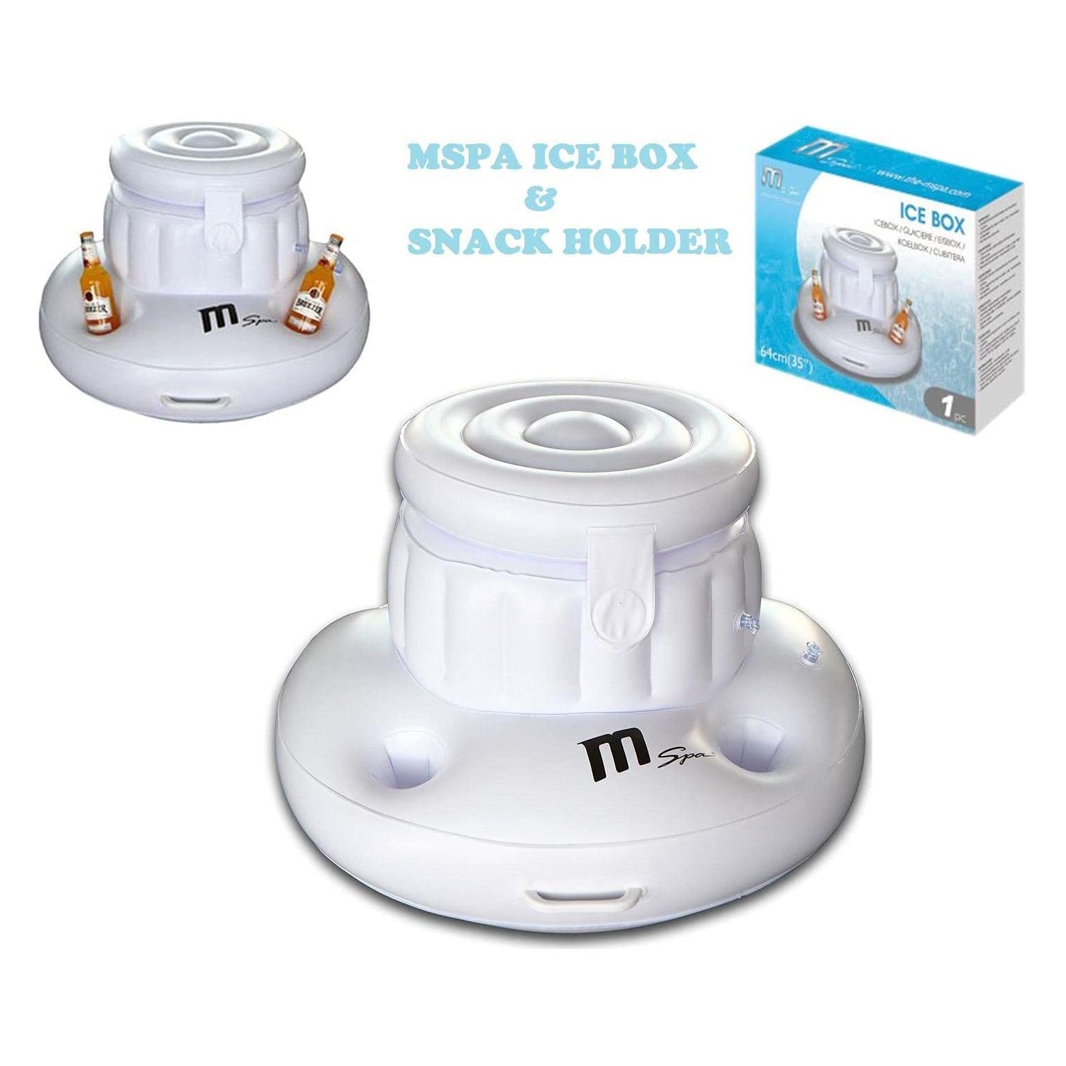 - MSpa inflatable ice box/drink or snack holder features five cups/drink holders around the side and one large space in the center where you can put ice to chill your drinks or simply treat it as a snack box.