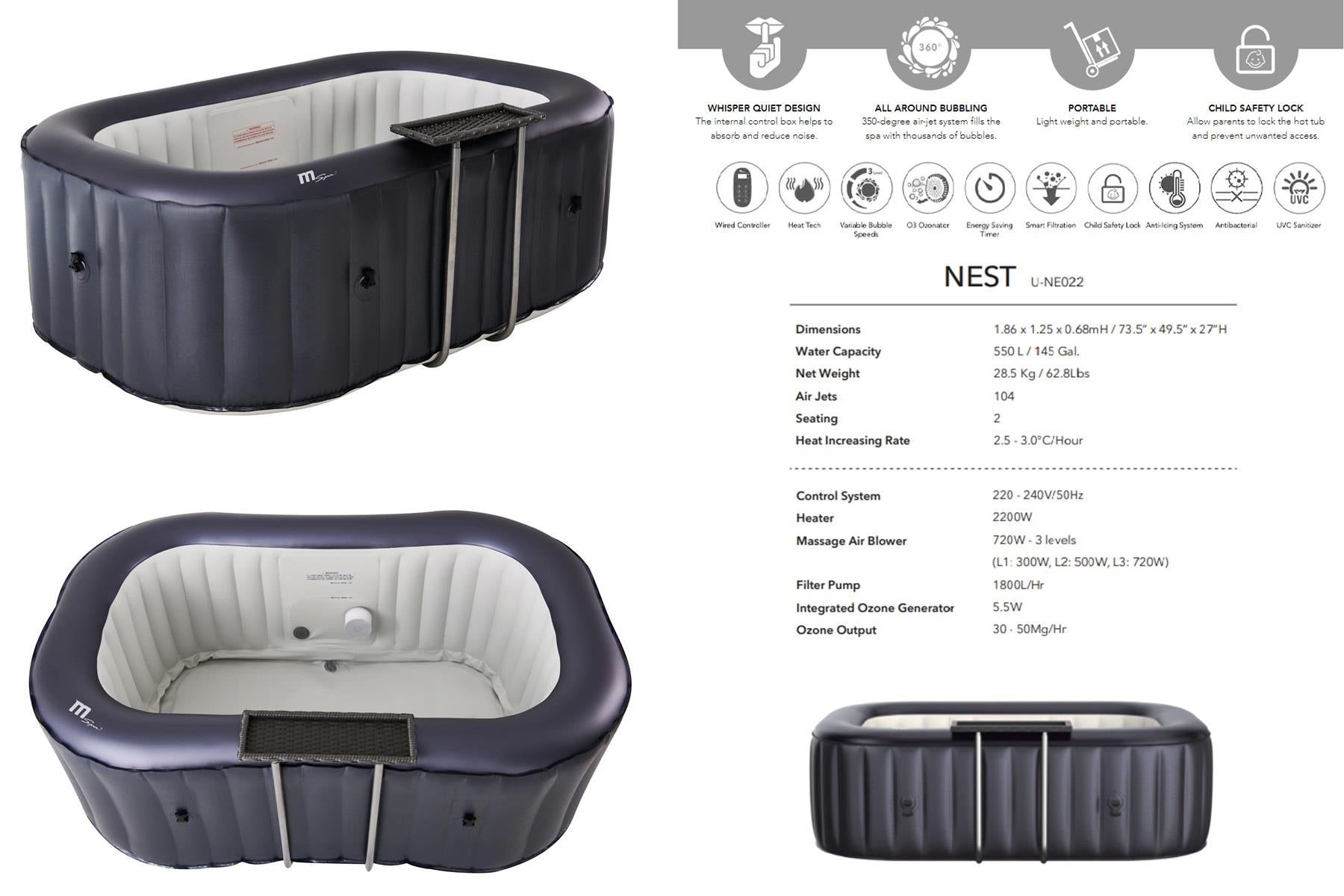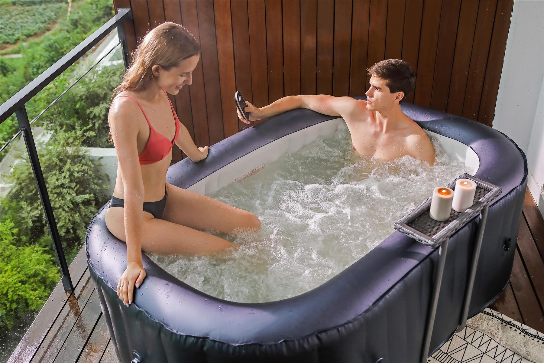 - An elegant inflatable hot tub to be used indoor or outdoor.