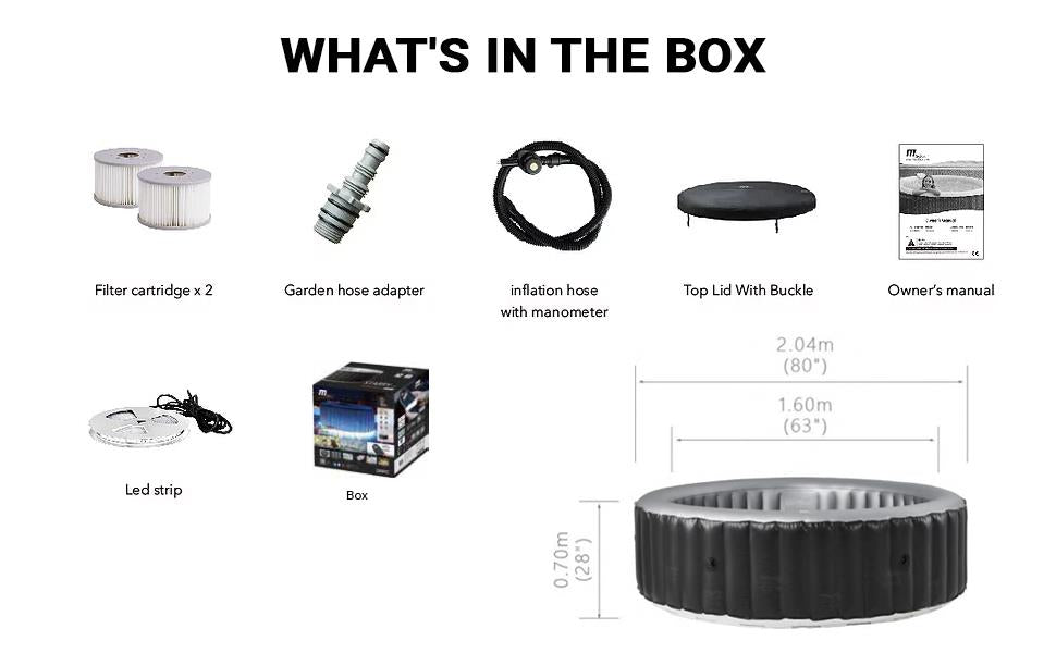 - An elegant inflatable hot tub to be used indoors or outdoors.