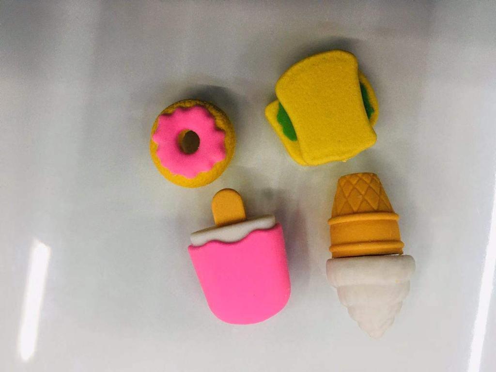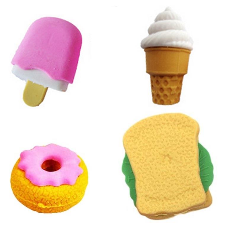 - PRODUCT DESCRIPTION Four colorful erasers in a dinosaur theme.