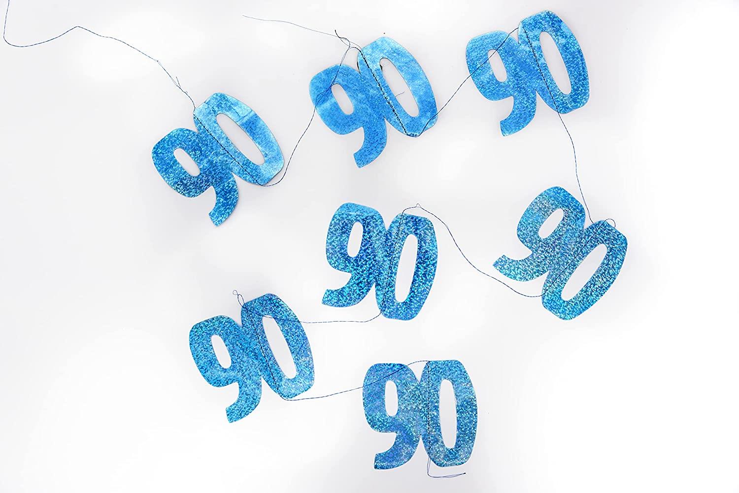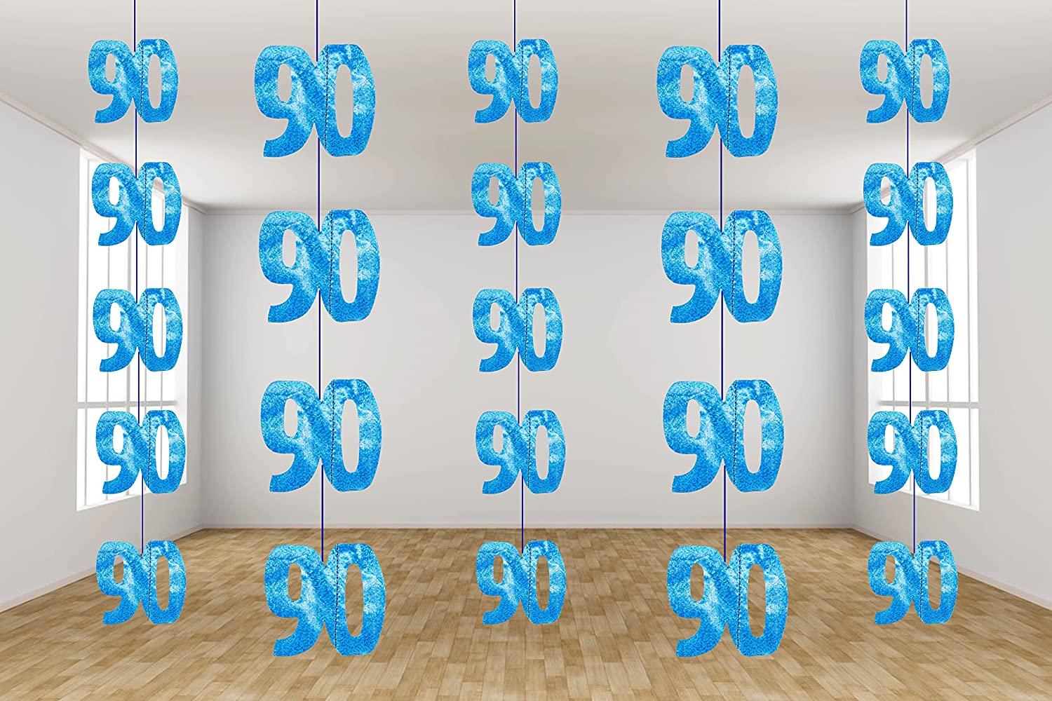- BLUE Glitz Age 90th Birthday Prismatic Hanging Decoration Surprise your guest with these wonderful and colourful Hanging Decorations Pack Quantity: 6. Material: Foil Decoration Length: 1.52m (5ft).