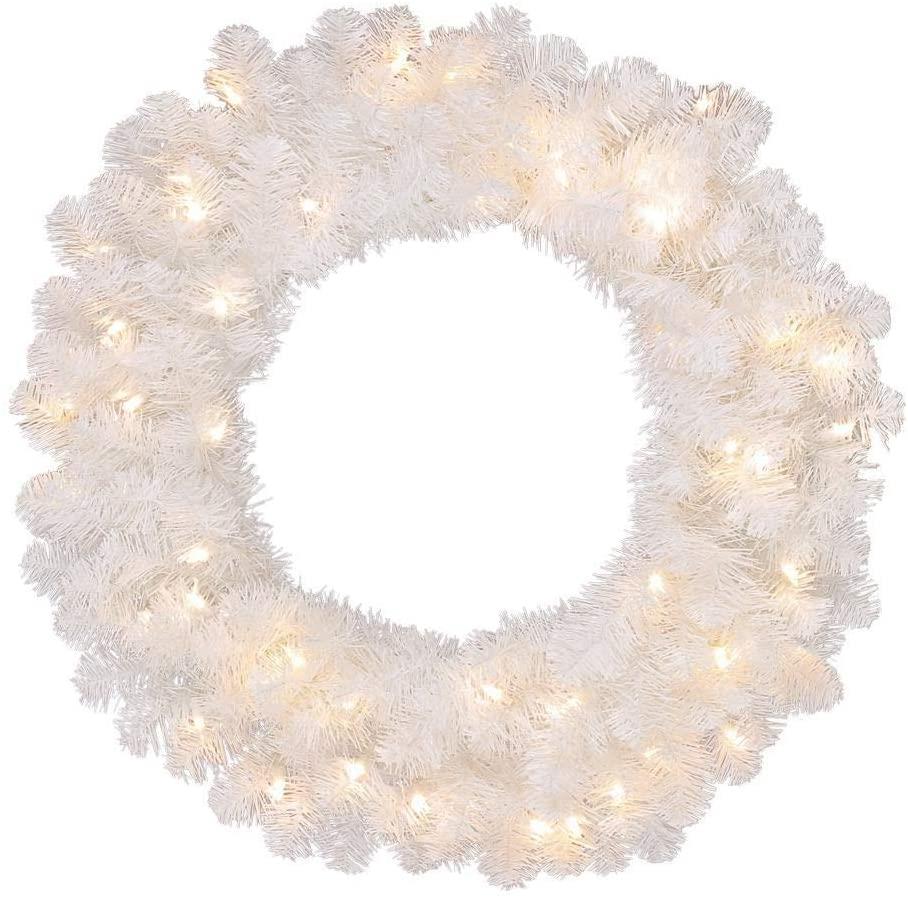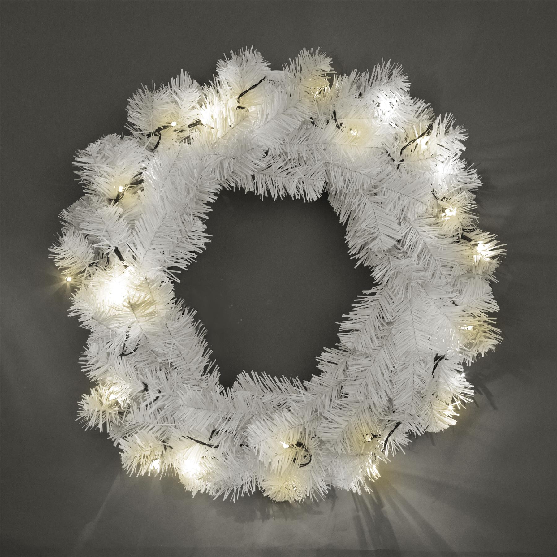 Pre-Lit Warm White LEDs Alaskan Pine Christmas Wreath - 55cm