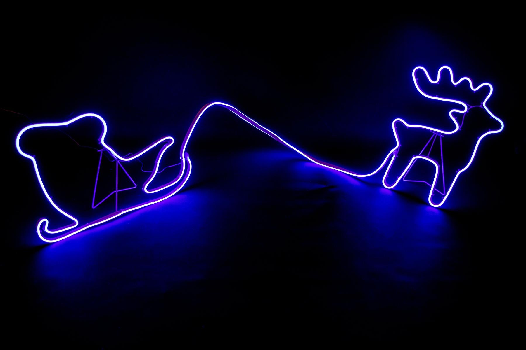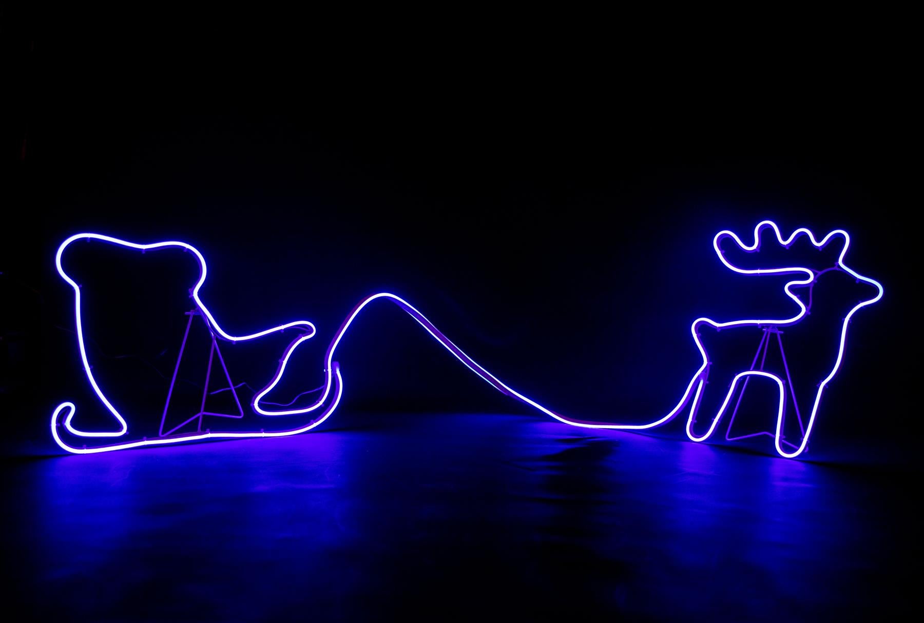 Reindeer 30x40cm & Sleigh 30x45cm Rope Light Silhouette Blue