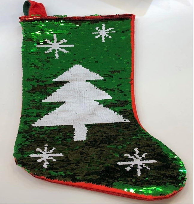 - Sequin Christmas stockings create a warm welcome for Santa with this festive reversible sequin Christmas stocking.