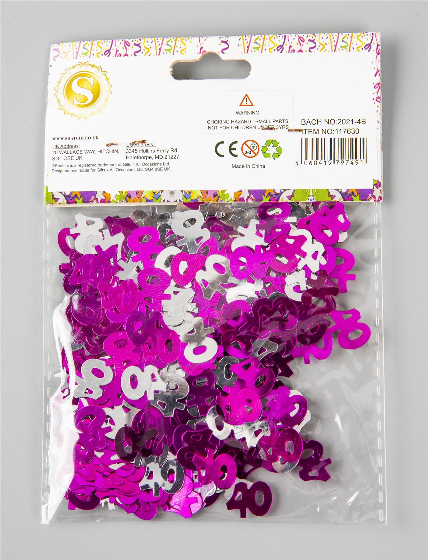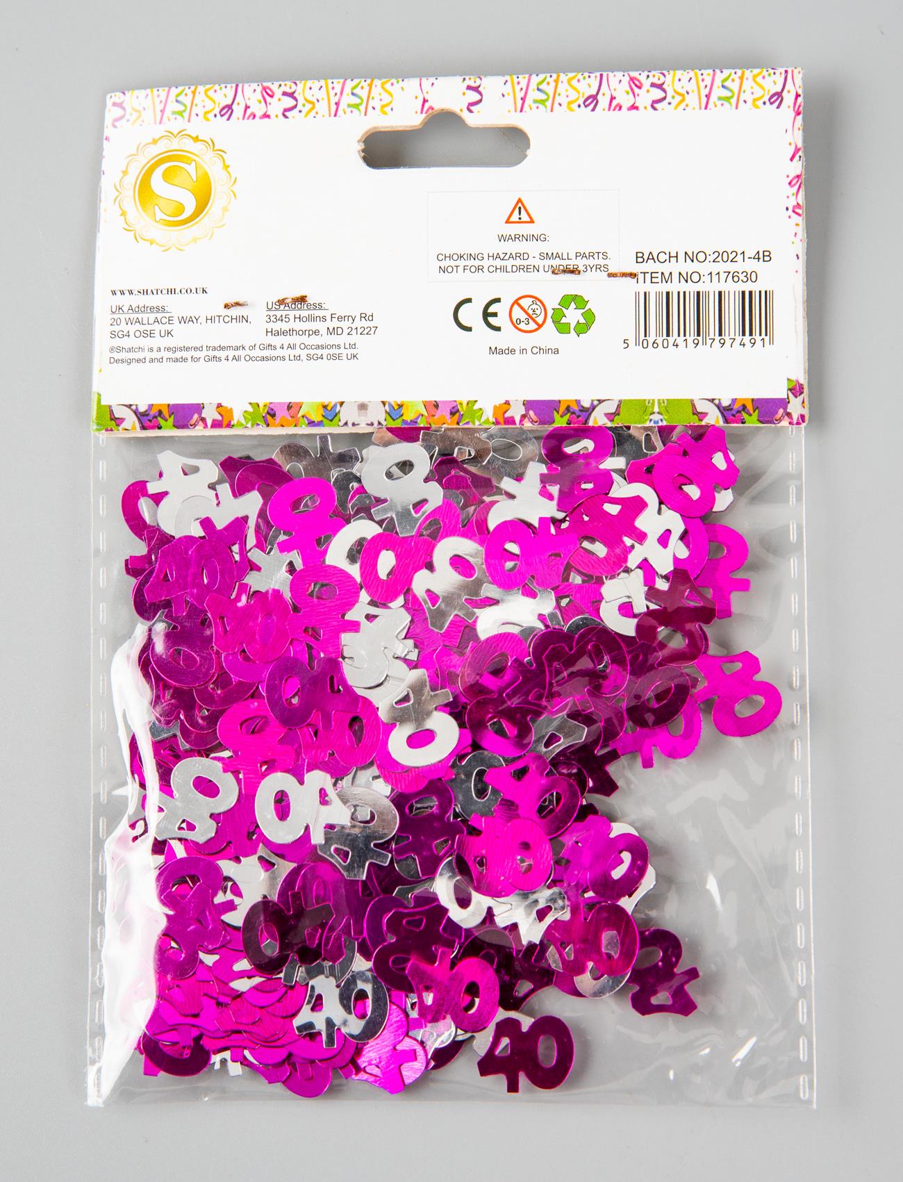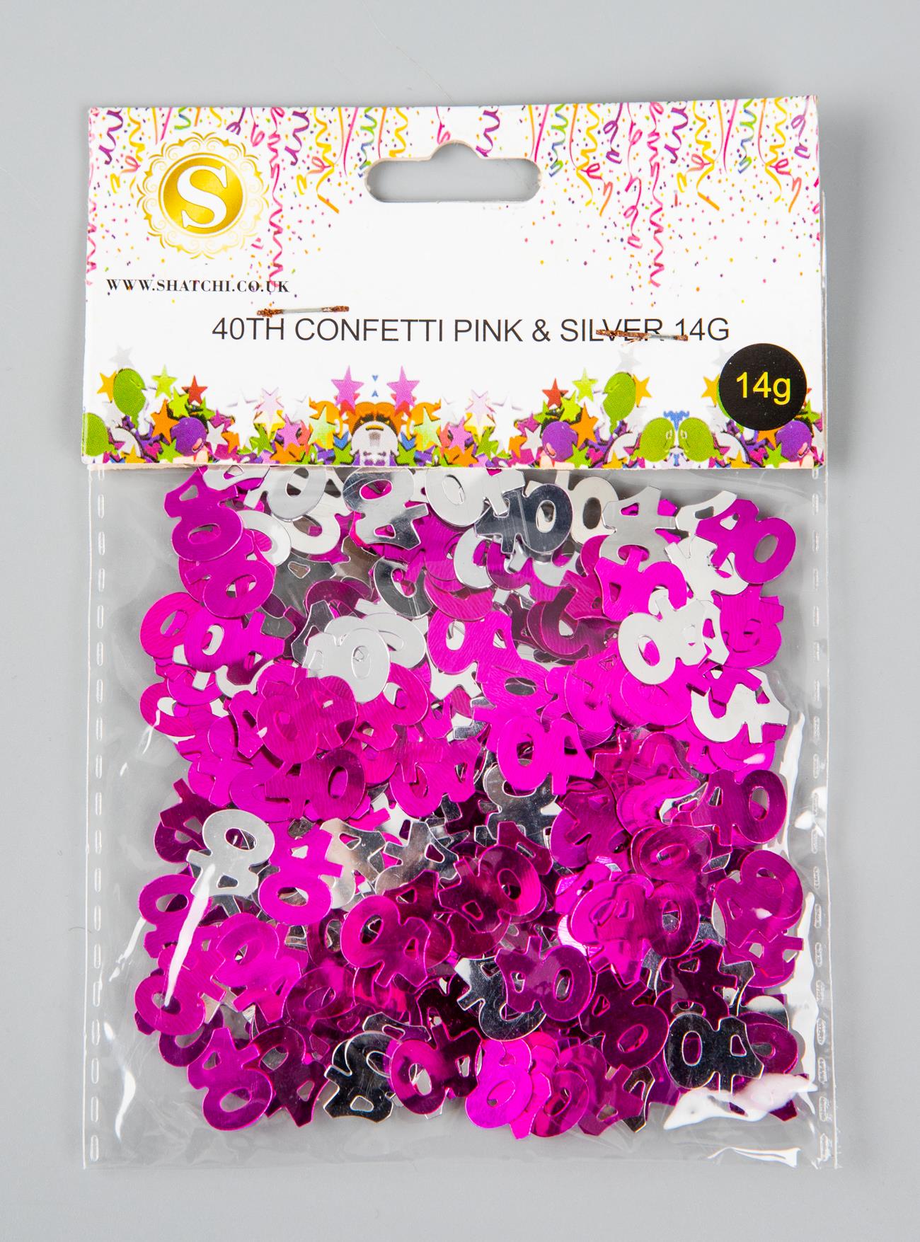 Shatchi 14g 40th Happy Birthday Pink & Silver Party Confetti