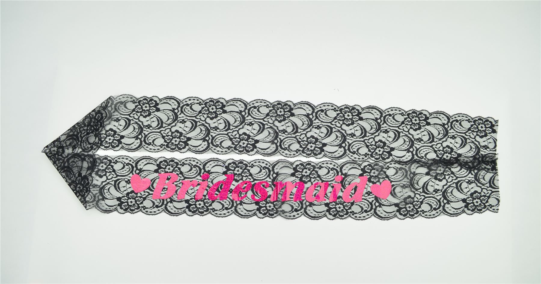- This lovely sash is great for bachelorette parties, bridal showers, wedding parties, girls' Night out, hen parties, and more! This beautiful, lace sash will give Her a classy look to compliment any dress and outfit. And one size fits all!