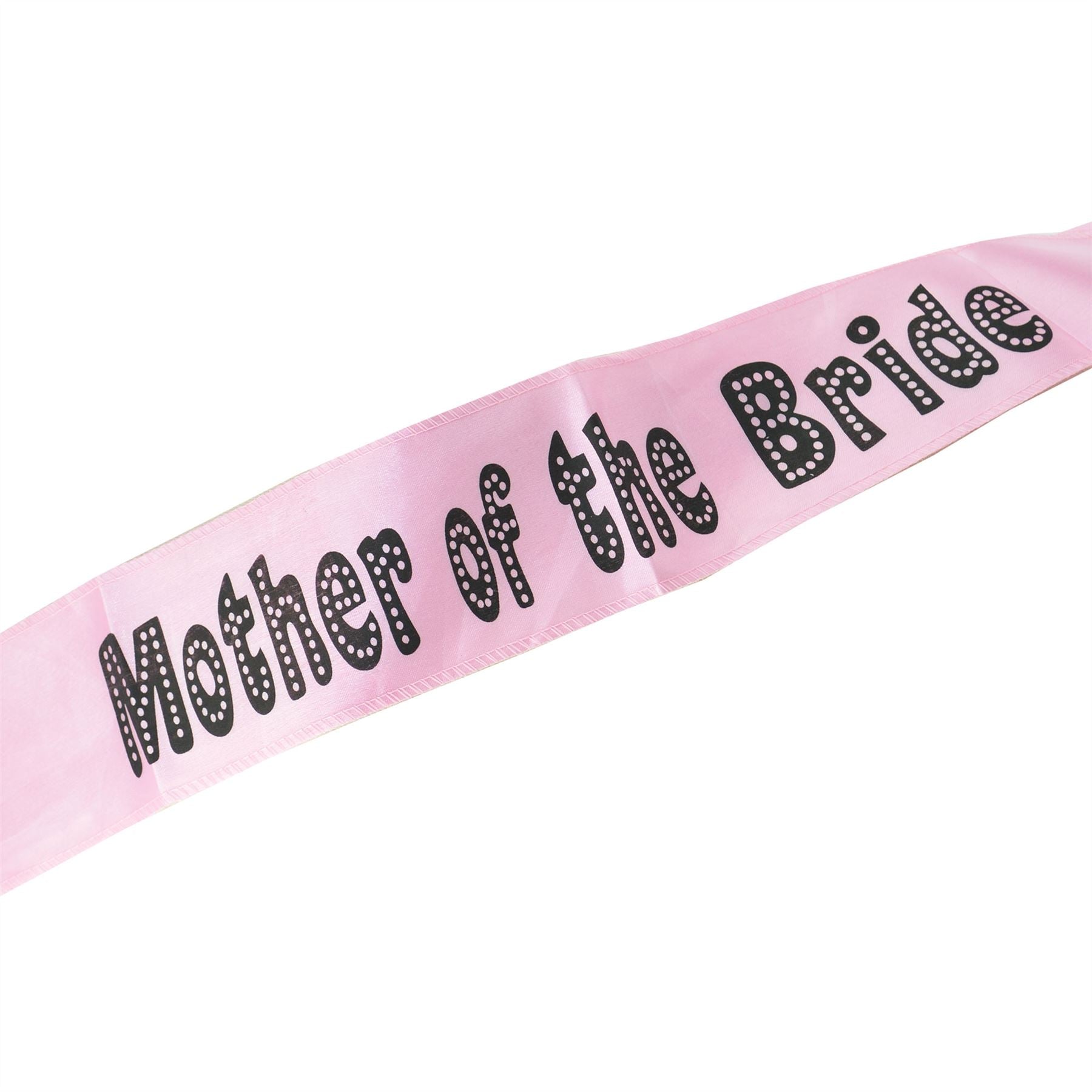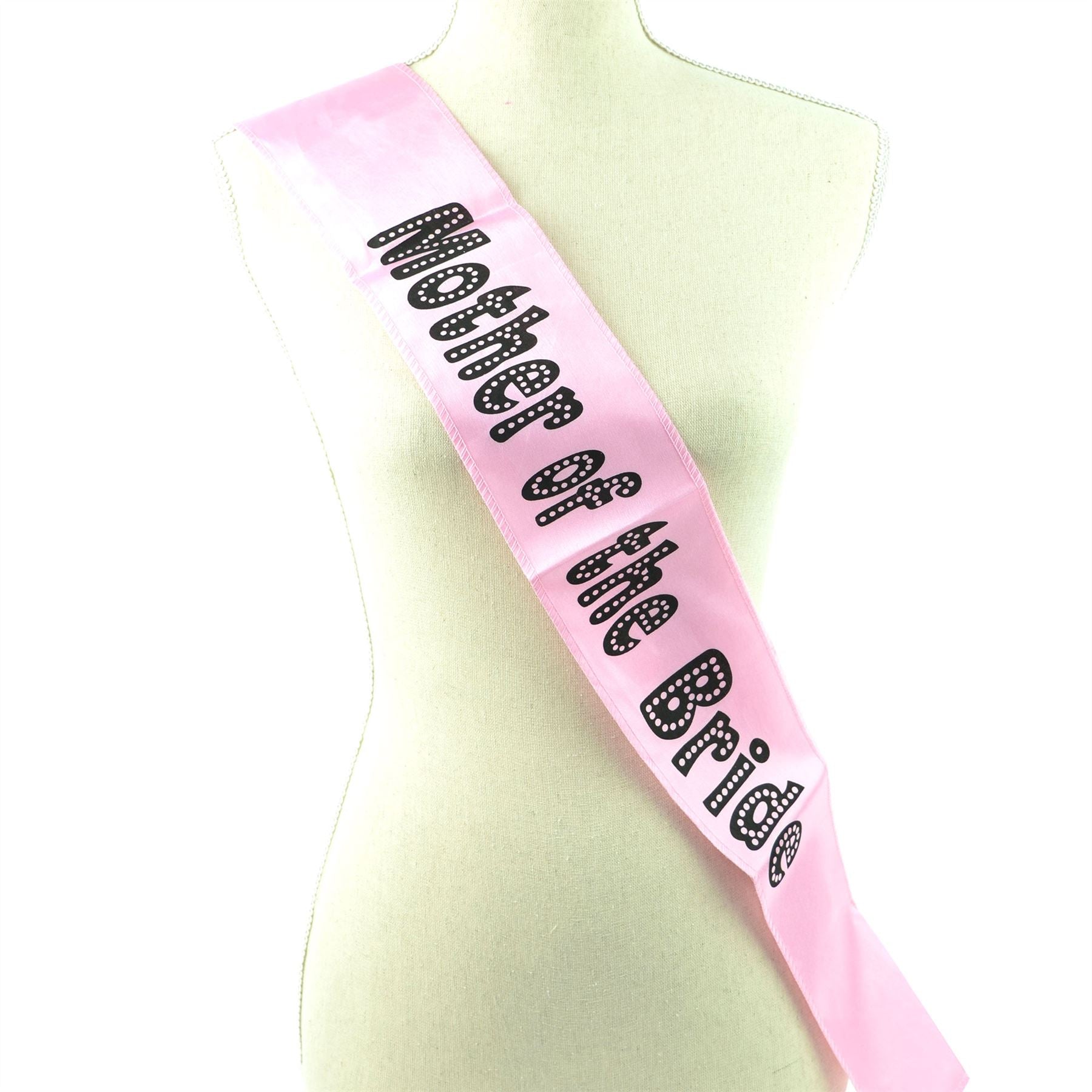 - Mother of the Bride pink sash hen night party girls' night out novelty sashes pink satin sash with black mother of the bride diamante detail fantastic for the elegant hen night the sash is made from height quality satin material sash size: 32"