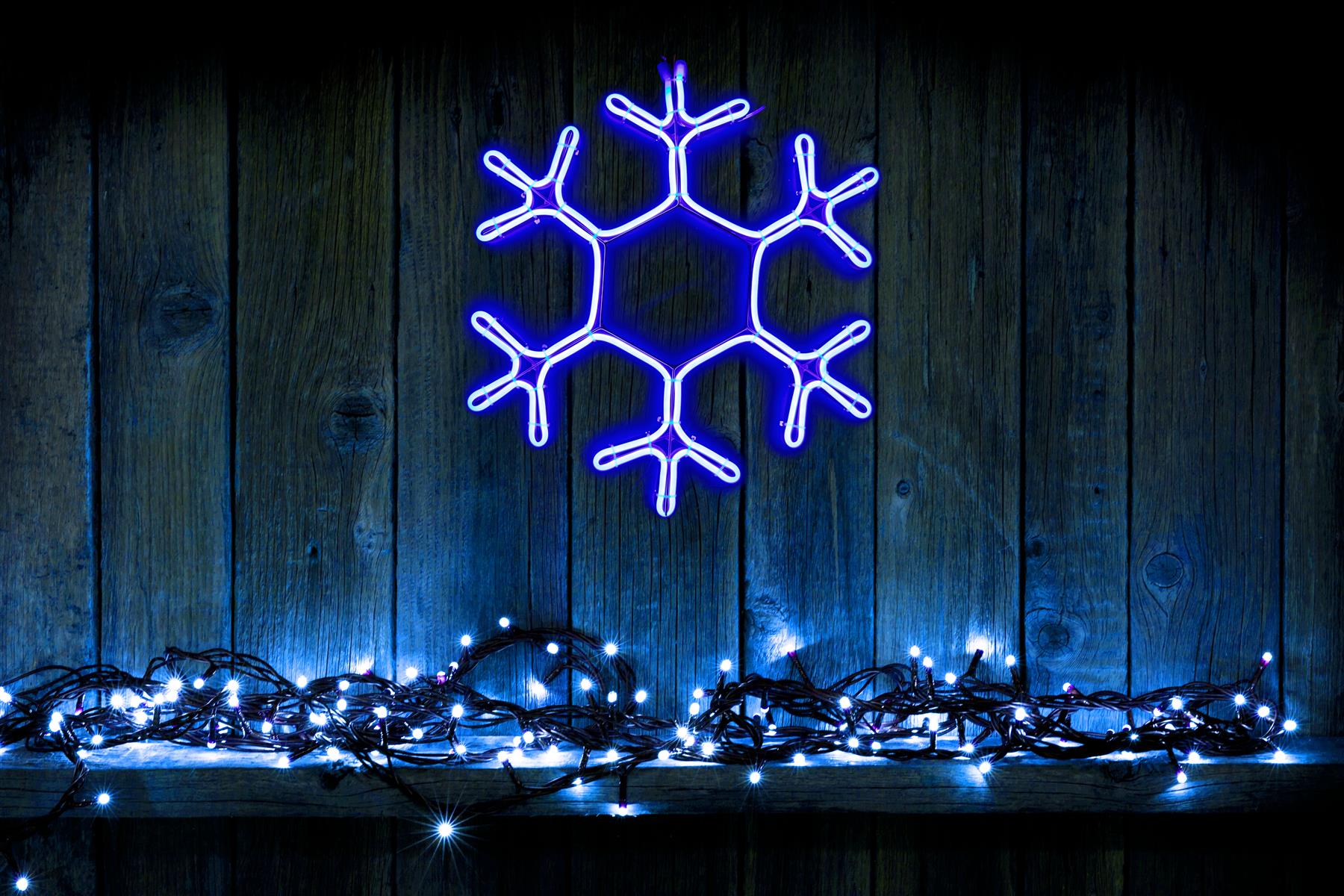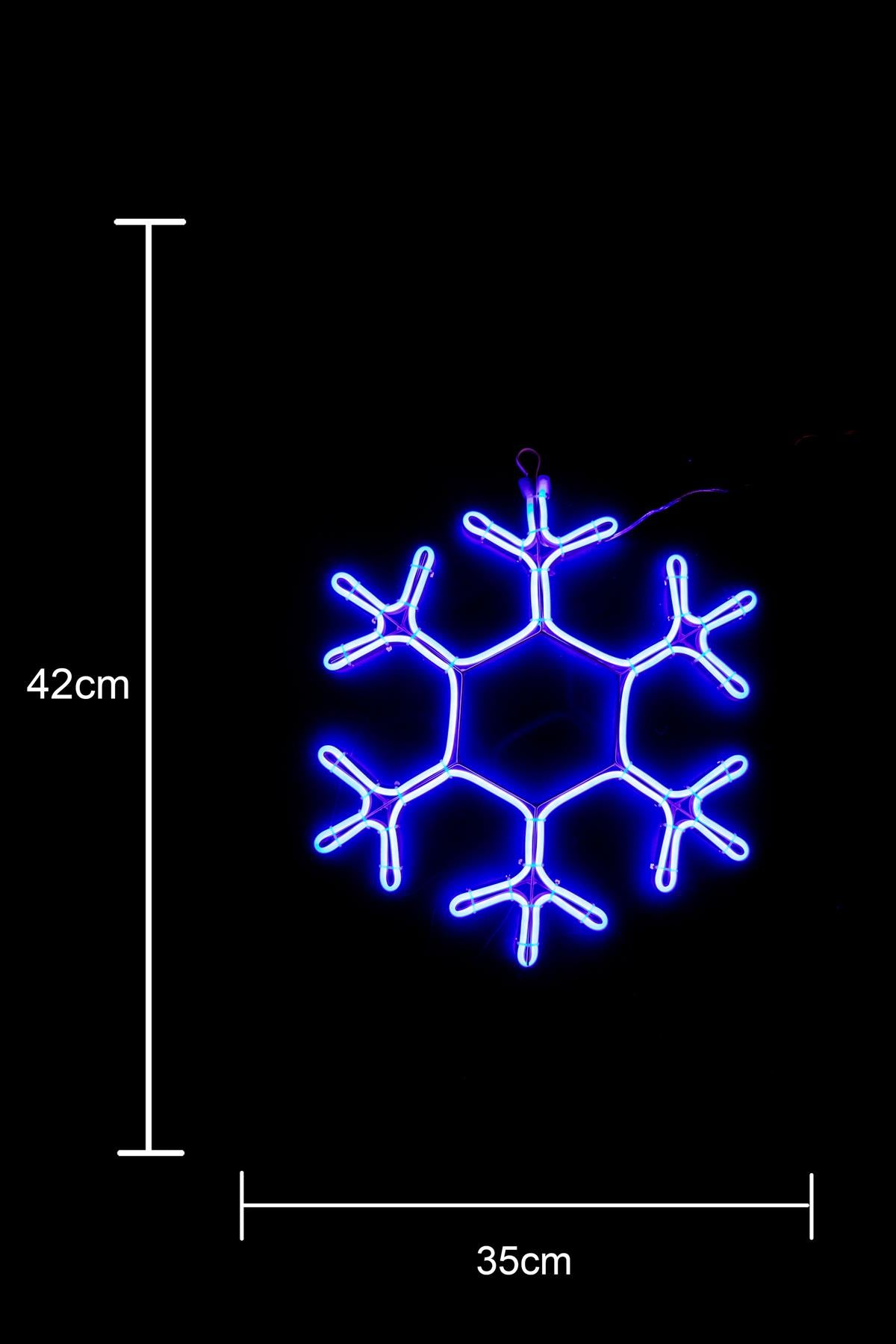 - HANGING DECOR: You can hang it on the outside wall of your home or living room. Also, you can decorate your ceiling with multiple snowflakes by hanging them from selling SHAPE: Snowflake, DIMENSIONS: 40cm Diameter, LED COUNT: 90 LEDs, LED COLOUR: Blue, STAND TYPE: Wall Mount NEON EFFECT STEADY LED: Neon Effected Rope Lights will not flash so you can easily watch it for hours without worrying about Migraine or headache. Bright steady light portrays the shape more perfectly. It looks nice and calming from every angle.