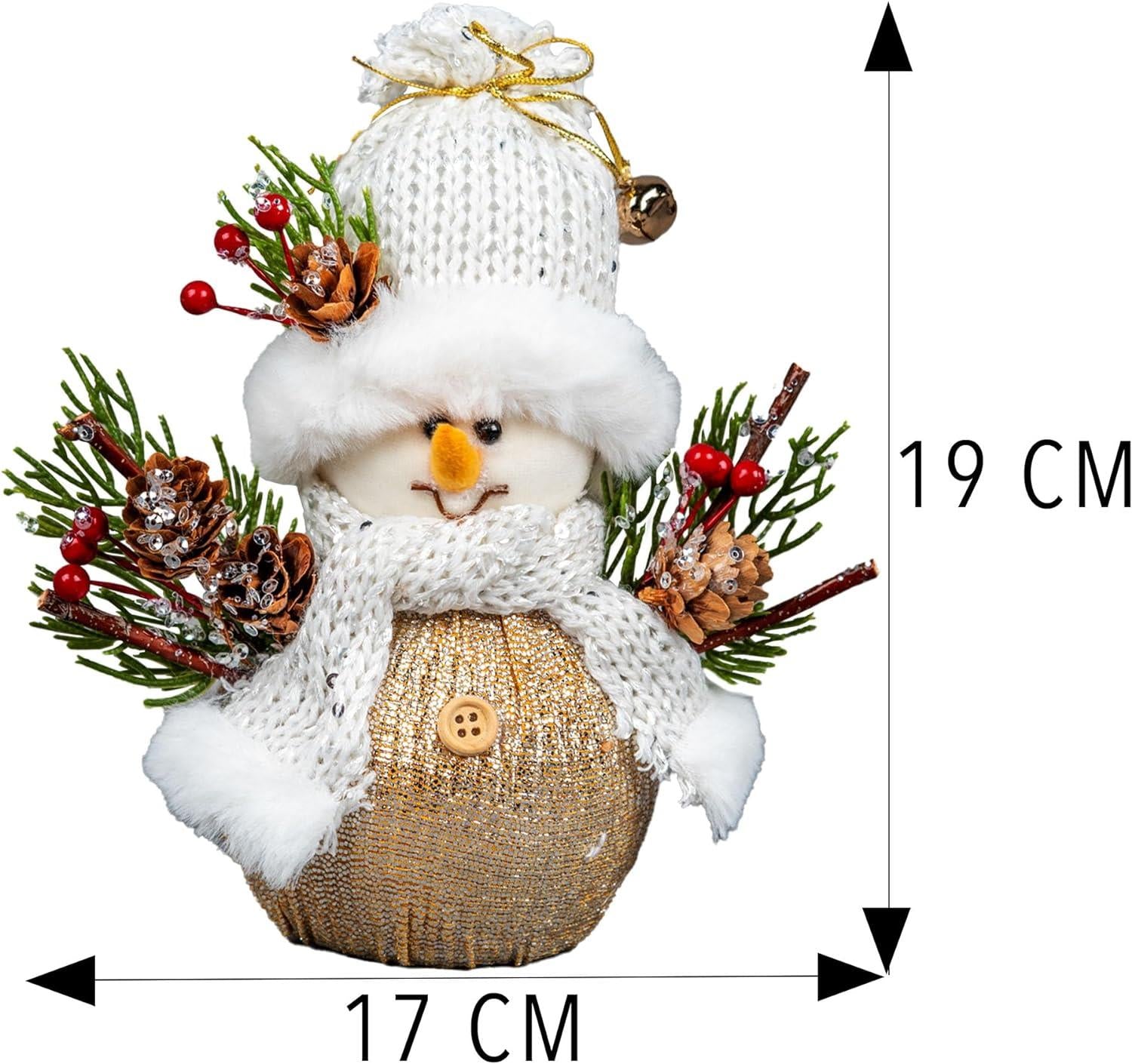 - Key Features: Festive Snowman Design: This charming snowman figurine stands 19cm (approximately 7.5 inches) tall and embodies the spirit of winter. It wears a furry knitted white hat and scarf, adding warmth and a sense of comfort to your holiday decor.