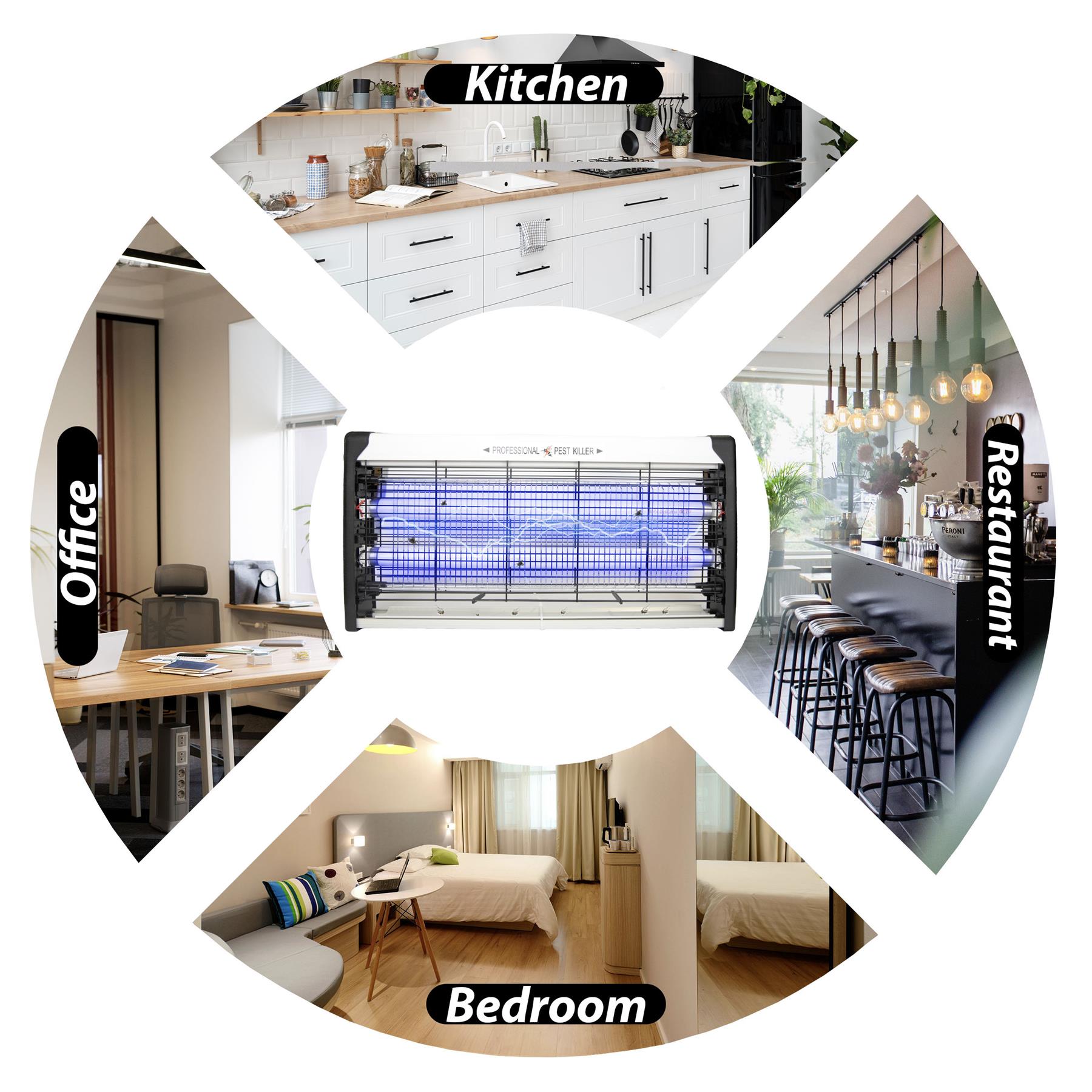 - Flies and mosquitoes can enter from any angle, it's suitable for large-scale fly Extermination.