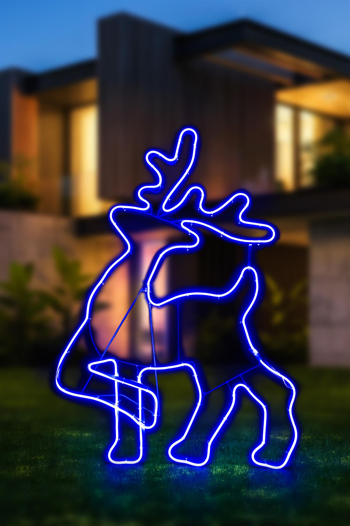 Walking Reindeer Rope Light Silhouette Blue 100 x 65cm