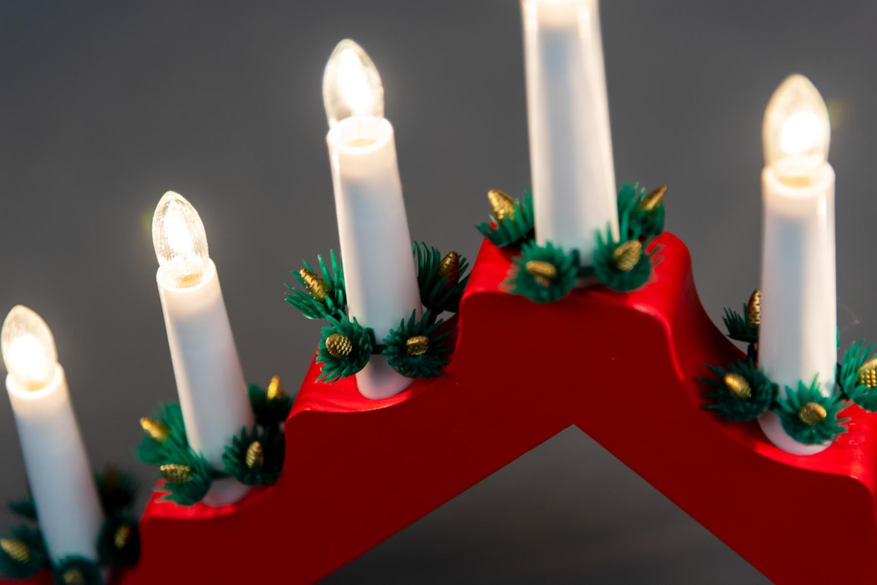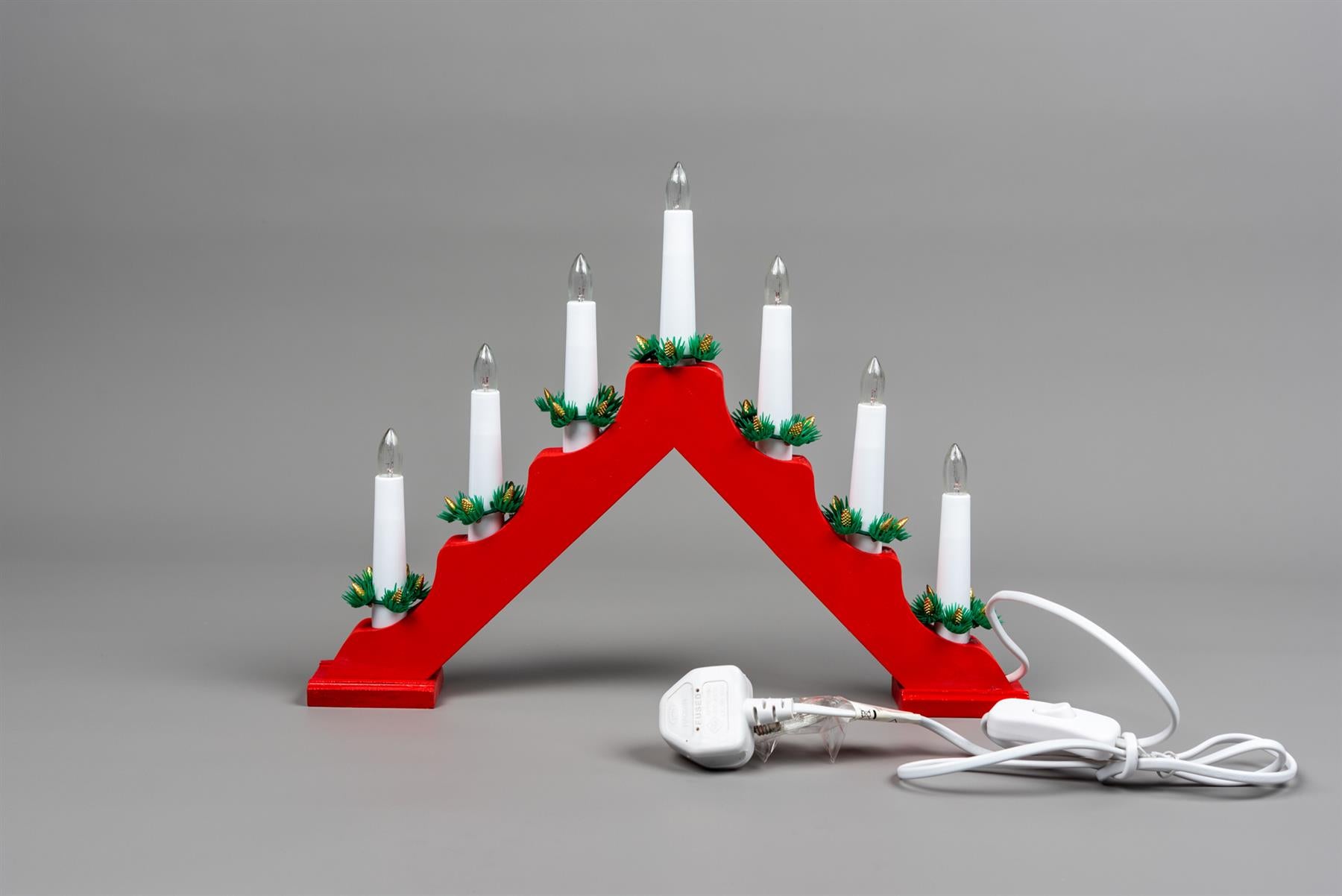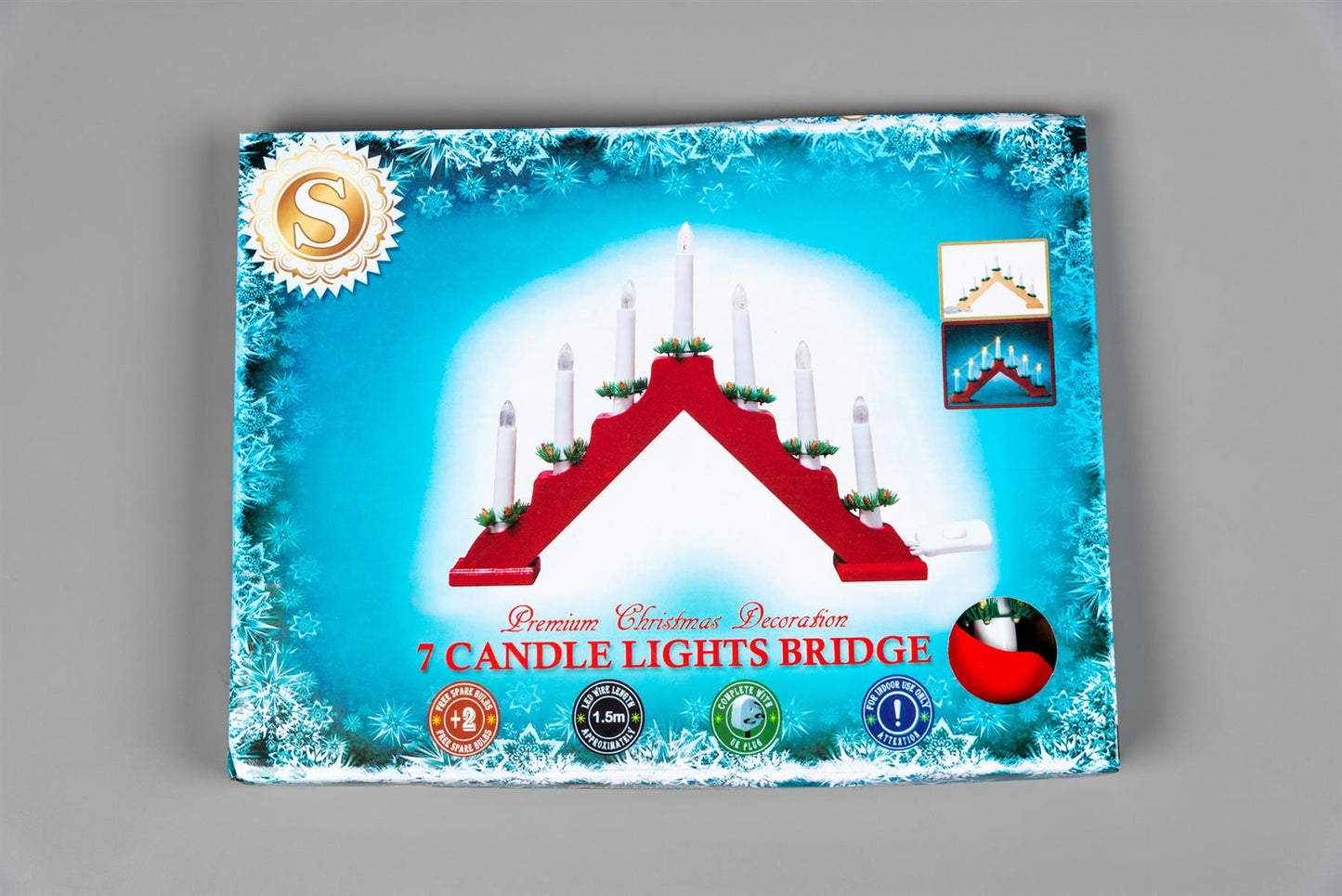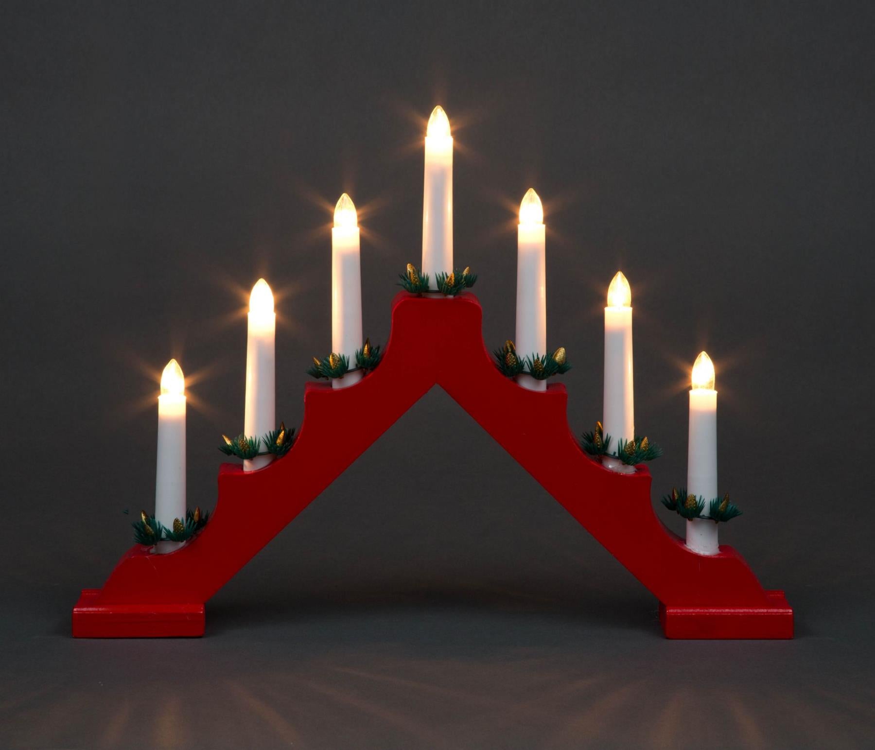 - This is a beautiful example with 7 candles with a small green pine effect with golden miniature pine cones around the base.