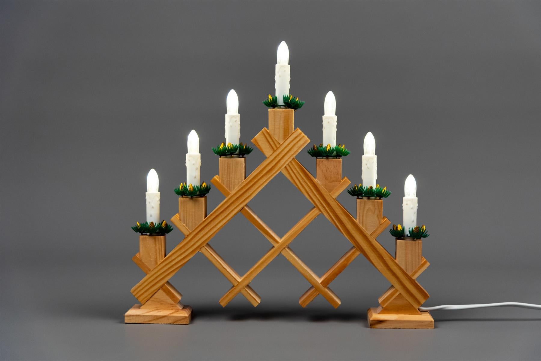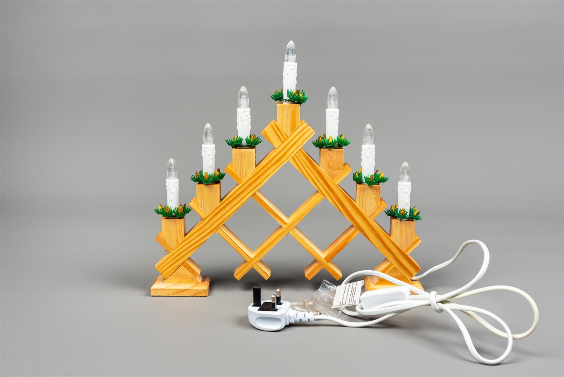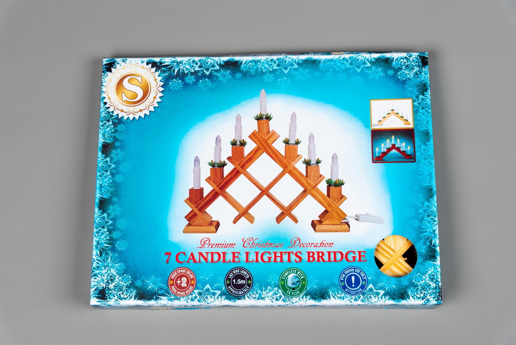 - The pine wooden effect of the bridge ensures that it will go with any Christmas theme that you already have and the lights will give the sense of a real flame without the danger of it!