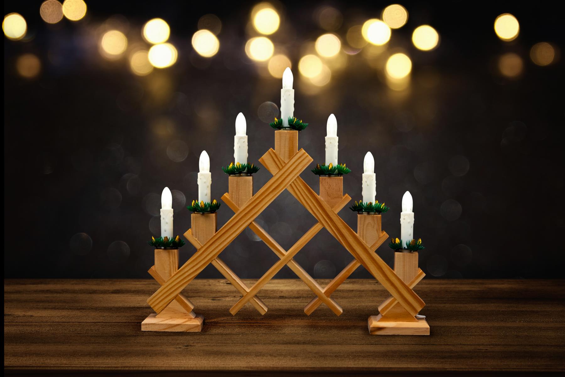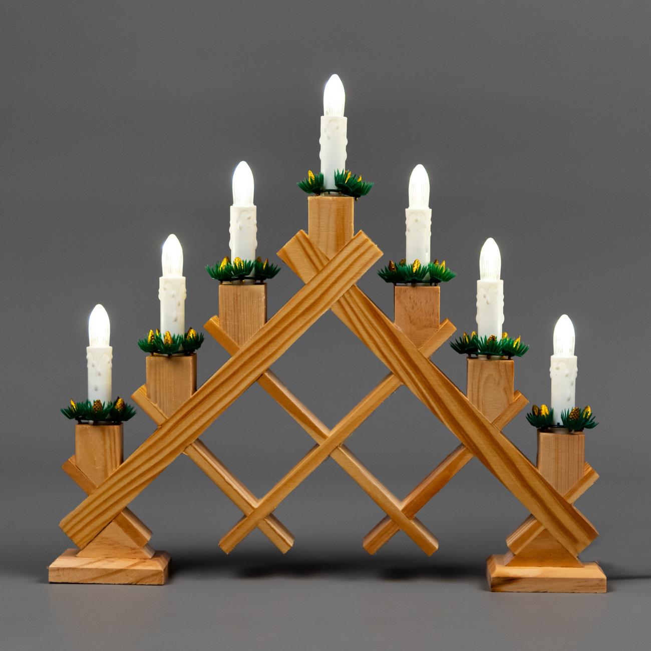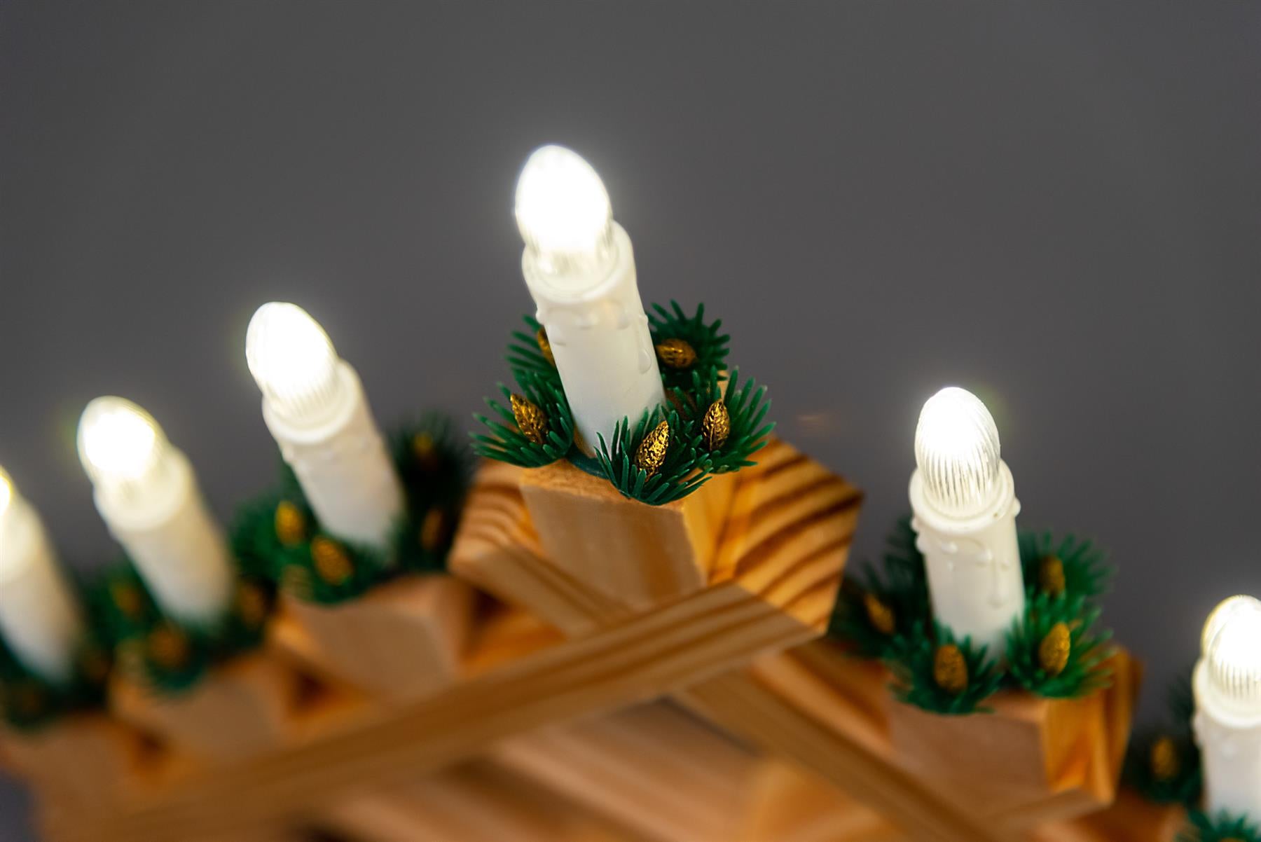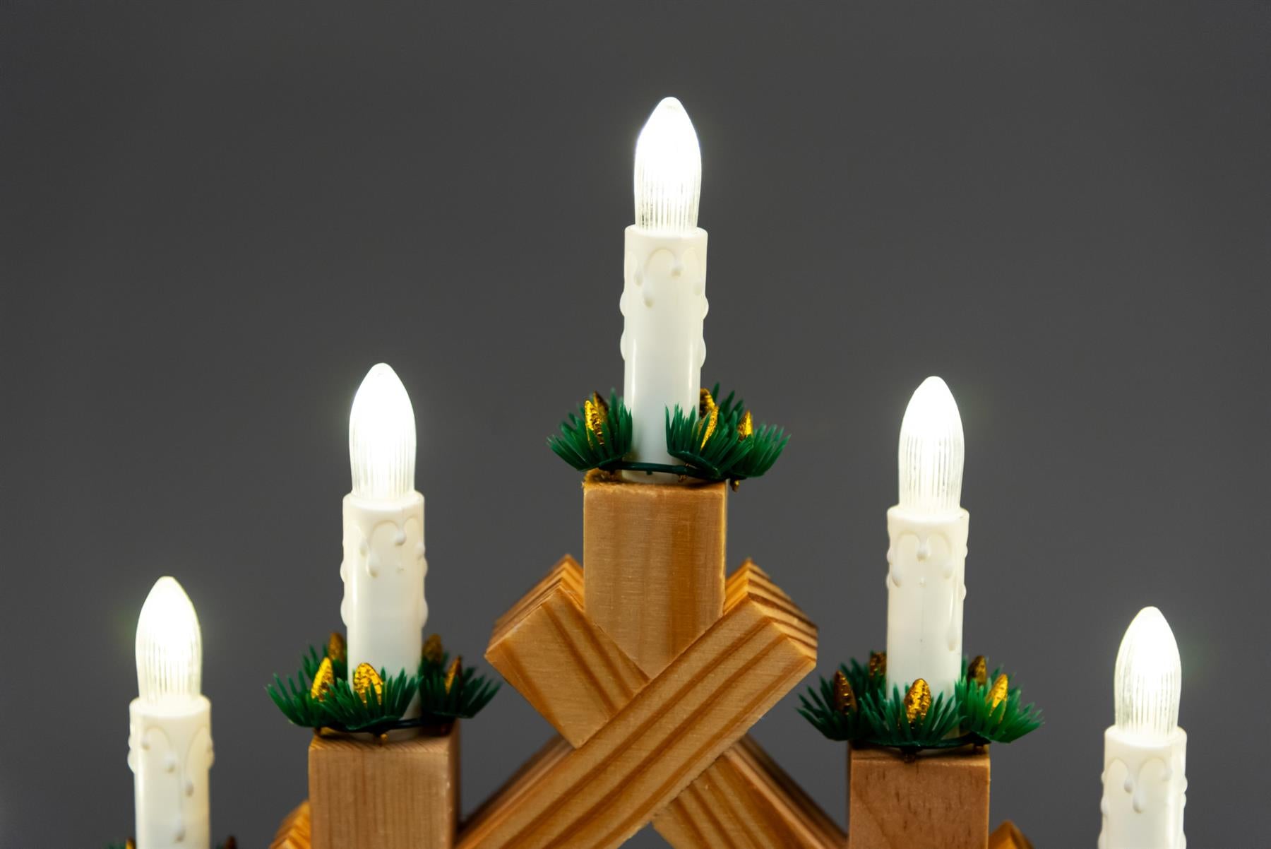 - The pine wooden effect of the bridge ensures that it will go with any Christmas theme that you already have and the lights will give the sense of a real flame without the danger of it!